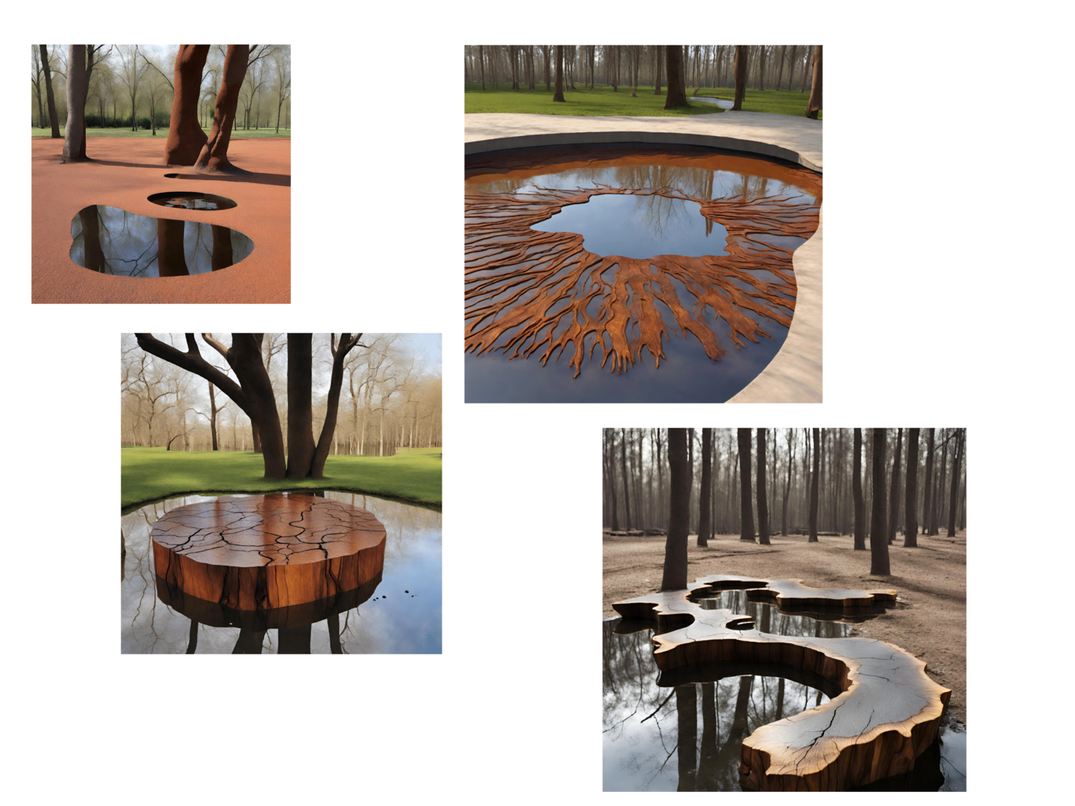 “Partindo de um levantamento minucioso do espaço, através de desenhos, imagens ilustrativas e maquetas, este projeto aprofundou a essência das paisagens do antropoceno e do holoceno, evidenciando as suas principais diferenças e nuances. Inspirado por esta exploração, foi concebida uma ação transformadora no espaço, centrada na criação de negativos a partir de um tronco abatido, carinhosamente apelidado de "mamute" devido à sua semelhança visual com a pele de elefante. Esta analogia provocadora entre uma espécie inexistente e o conceito emergente do capitoloceno veio acrescentar profundidade e significado à intervenção artística. Em seguida, seis fragmentos foram meticulosamente modelados em barro cerâmico e revestidos com um vidro castanho, evocando a tonalidade da madeira. A ação performática que se seguiu, trouxe uma analogia poética à ideia de devolver a água ao ‘Mamute’, infundindo-o com vitalidade e renovando seu propósito no espaço. Esta cerimónia simbólica não apenas celebrou a interconexão entre o ser humano e a natureza, mas também destacou a importância da água como elemento vital para toda forma de vida. Este projeto não se limita a uma simples intervenção artística, mas sim insere-se numa jornada de pesquisa artística profunda, onde cada ação, cada forma e cada material são cuidadosamente selecionados e trabalhados para expressar uma narrativa visual única. Ao unir arte e investigação, esta iniciativa busca não apenas criar beleza, mas também despertar uma reflexão sobre nossa relação com o meio ambiente e o papel transformador da arte na sociedade contemporânea.”