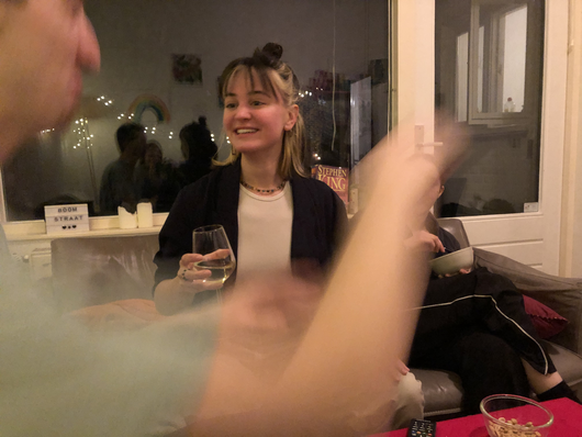 The second performance, at 19.00, had according to me the essential feeling to it. In the warm up, I had helped Cézanne (the dancer) to get deep into the performative state that she needed to be in. A certain way of moving, which includes moving slowly on the floor with as many body parts released as possible, helps with getting there.