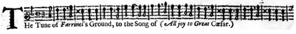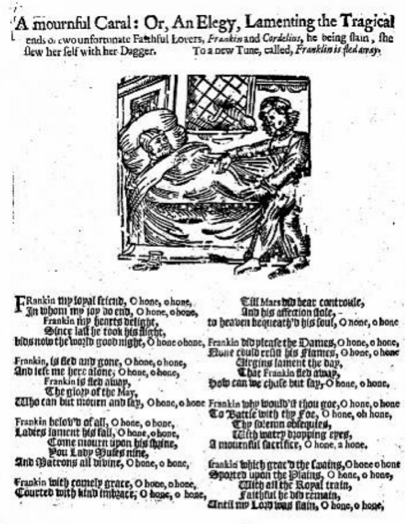 Ex. 8: Ballad sheet of A mournful Caral: Or, An Elegy, Lamenting the Tragical. To the Tune, called Francklin is fled away. No 67, Franklyn in Apollo’s Banquet [1]