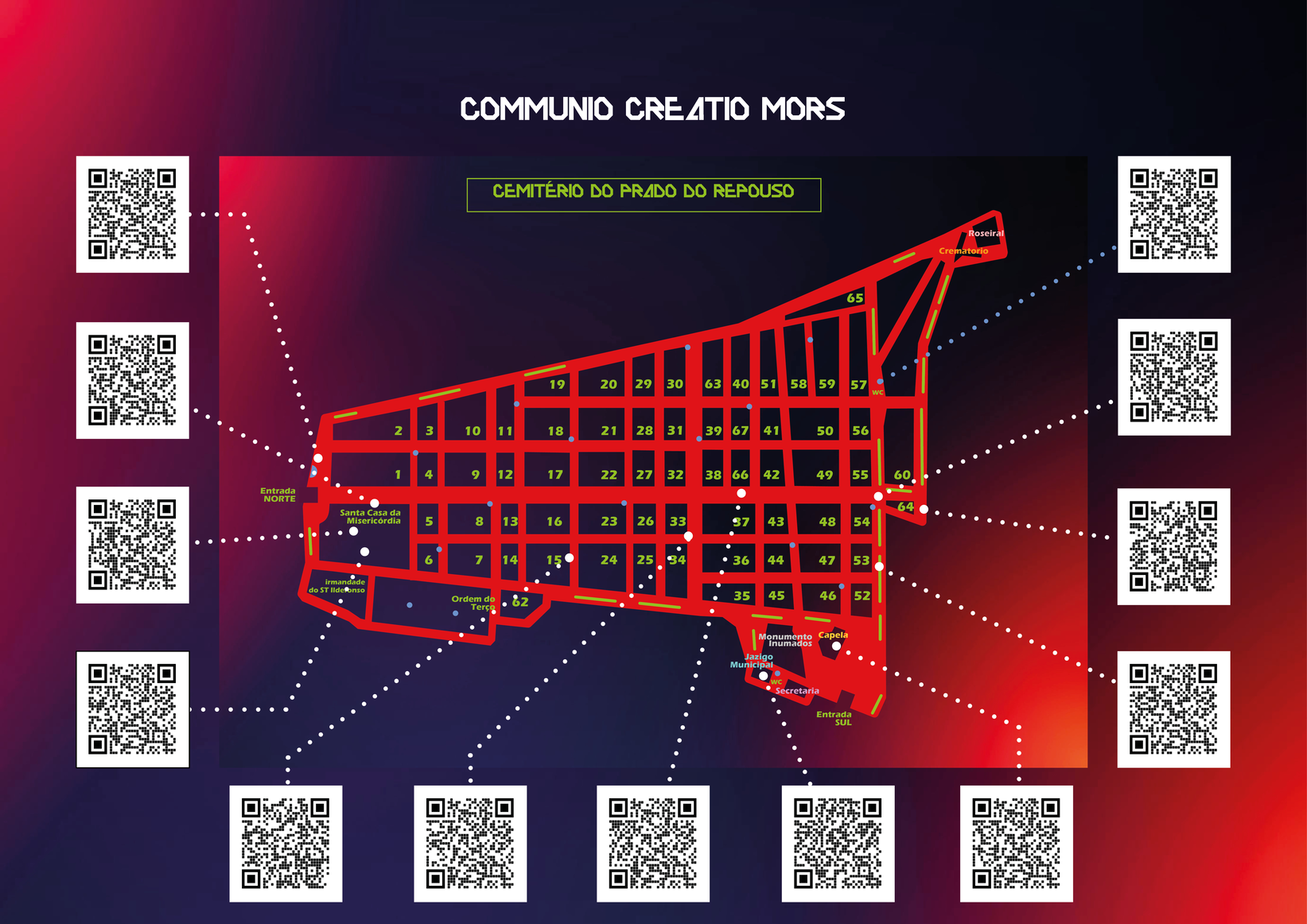 To mitigate the impact of inclement weather or the potential removal of the artworks, I conceived the notion of employing QR codes as substitutes for the physical installations in the event of their disappearance, concurrently establishing a digital archive to preserve their memory. Consequently, I devised an alternative version of the map featuring QR codes, thereby facilitating access to the digital realm.
