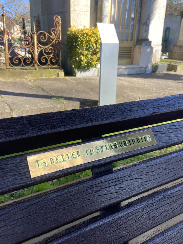 The insatllations are thirteen, drawing inspiration from street art and guerrilla art paradigms, embodying philosophical and political meditations on themes of death, life, and contemporary societal constructs, while simultaneously manifesting as subtle and ironic distortions of reality. Notably, only one installation is designed for activation by the public, emphasising the possible interactive dimension of artistic activity. All the works have been realised with due reverence for the site and its tombs,in order to bring attention to ethical and aesthetic considerations towards the site.