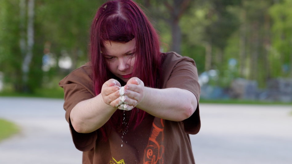 Marija Griniuk performing at the Performance Studies in Sapmi 2024 festival at the Sámi Centre for Contemporary Art. Photo Albinas Liutkus.
