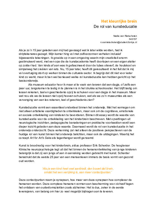Waarde van kunsteducatie