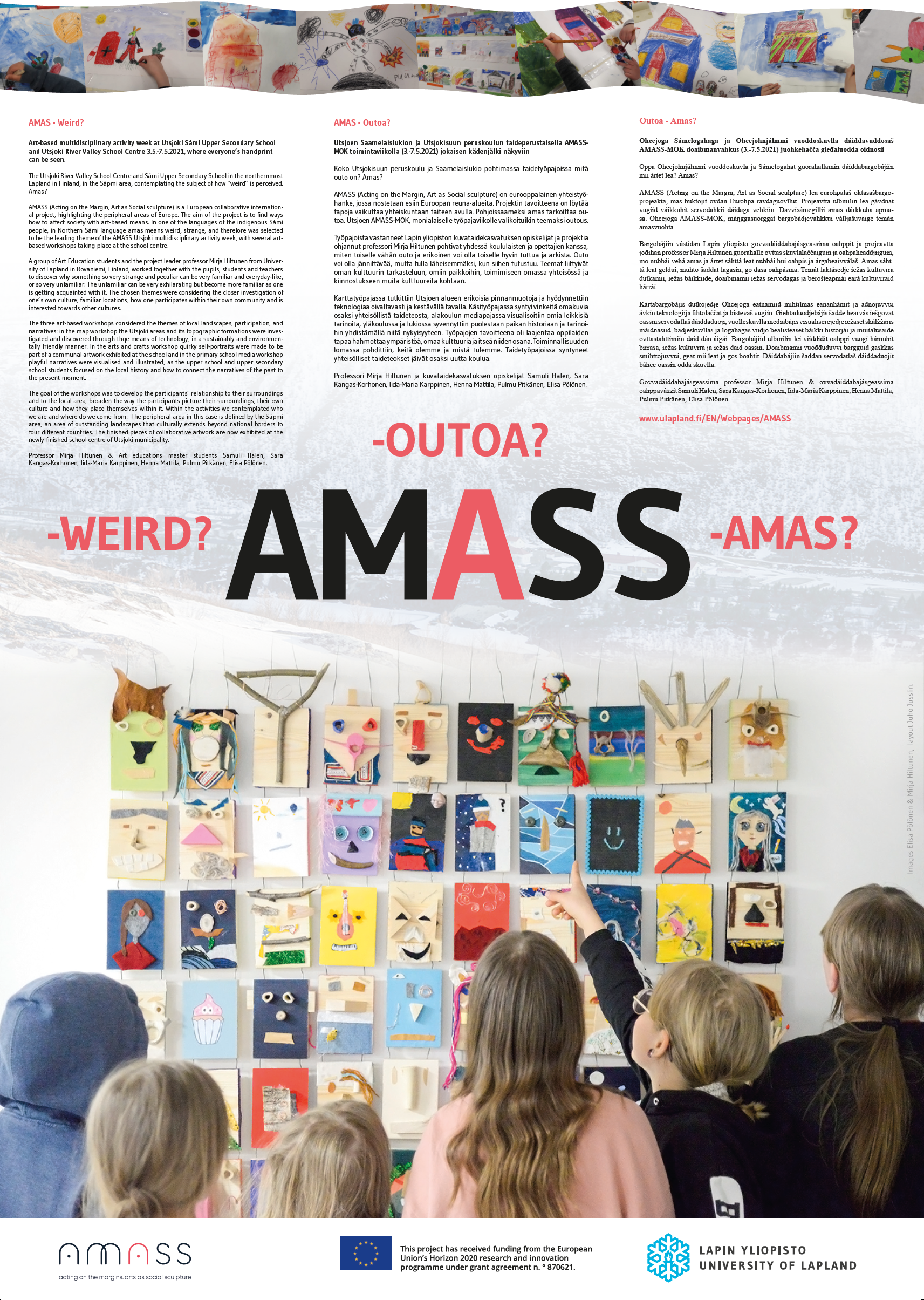 AMASS-hankkeeseen sisältyi palvelumuotoilun, kuvataidekasvatuksen ja kuvataiteen kokeiluita sosiaalisten ongelmien ratkaisemiseksi. Lapin yliopisto johti konsortiota, jossa olivat mukana Maltan yliopisto, Kaarlen yliopisto Tšekistä, Corvinuksen yliopisto Unkarista, Paco Design Collaborative Italiasta, Leedsin yliopisto Englannista, Boråsin yliopisto Ruotsista sekä kuvallisen ilmaisun ja viestinnän opettajien yhdistys Associação de Professores de Expressão e Comunicação Visual Portugalista. Lapin yliopiston kehittämispilotoinnit toteutuivat Rovaniemellä ja Utsjoella sekä Kolarin, Muonion ja Enontekiön kuntien kylissä. Tämän eksposition laatineet Lapin yliopiston professorit Hiltunen ja Huhmarniemi työskentelivät AMASS-hankkeessa tutkijoina monessa roolissa vastaten muun muassa taideperustaisen toimintatutkimuksen lähtökohdista Suomen osaprojekteissa.