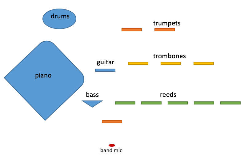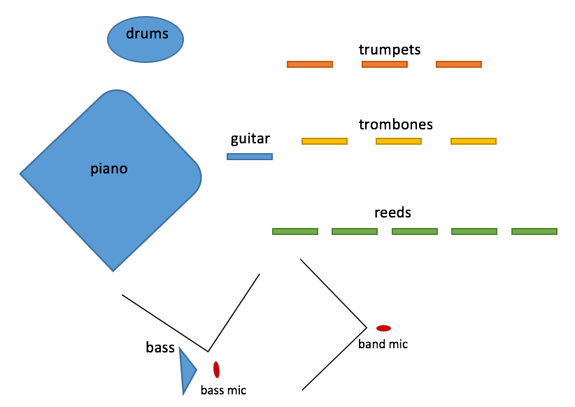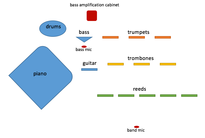 [BJO in set-up 2. Note the positions of the bass and band microphone. Photo courtesy of Koen Maes.]