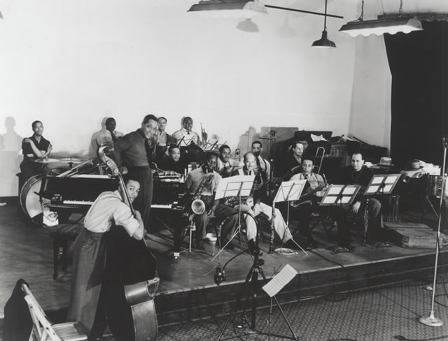 Illustration 1: the Ellington band with bassist Billie Taylor in the ARC Studios, New York, 17 July 1936.