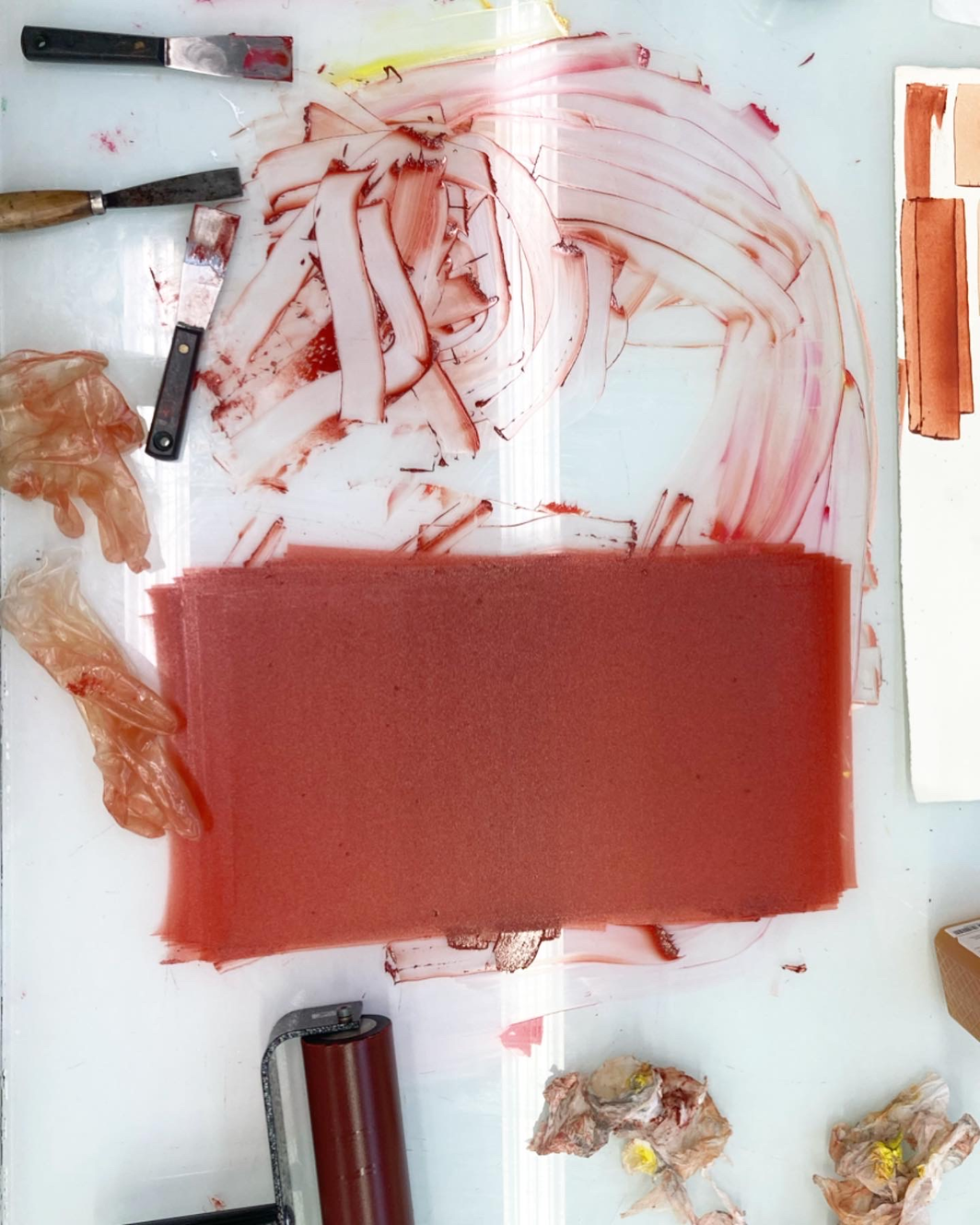 Into the margin/In the marrow This is a woodcut printmaking project based on the book as body, form and platform. It is about the formal aesthetic layout of a book, but also about references to the bodily. In norwegian you have the expression "to feel something into the marrow" leads to reflections on identity and feelings. Also the word marrow is the same as margin. The book's margin offers space for the eye and space for your own notes. It becomes a way to communicate with the author's voice. The types, i.e. the letters in the prints, are found objects. Random bits that others have made. The woodcuts are shown both as framed pictures on the wall, and bound as pages in five different books.