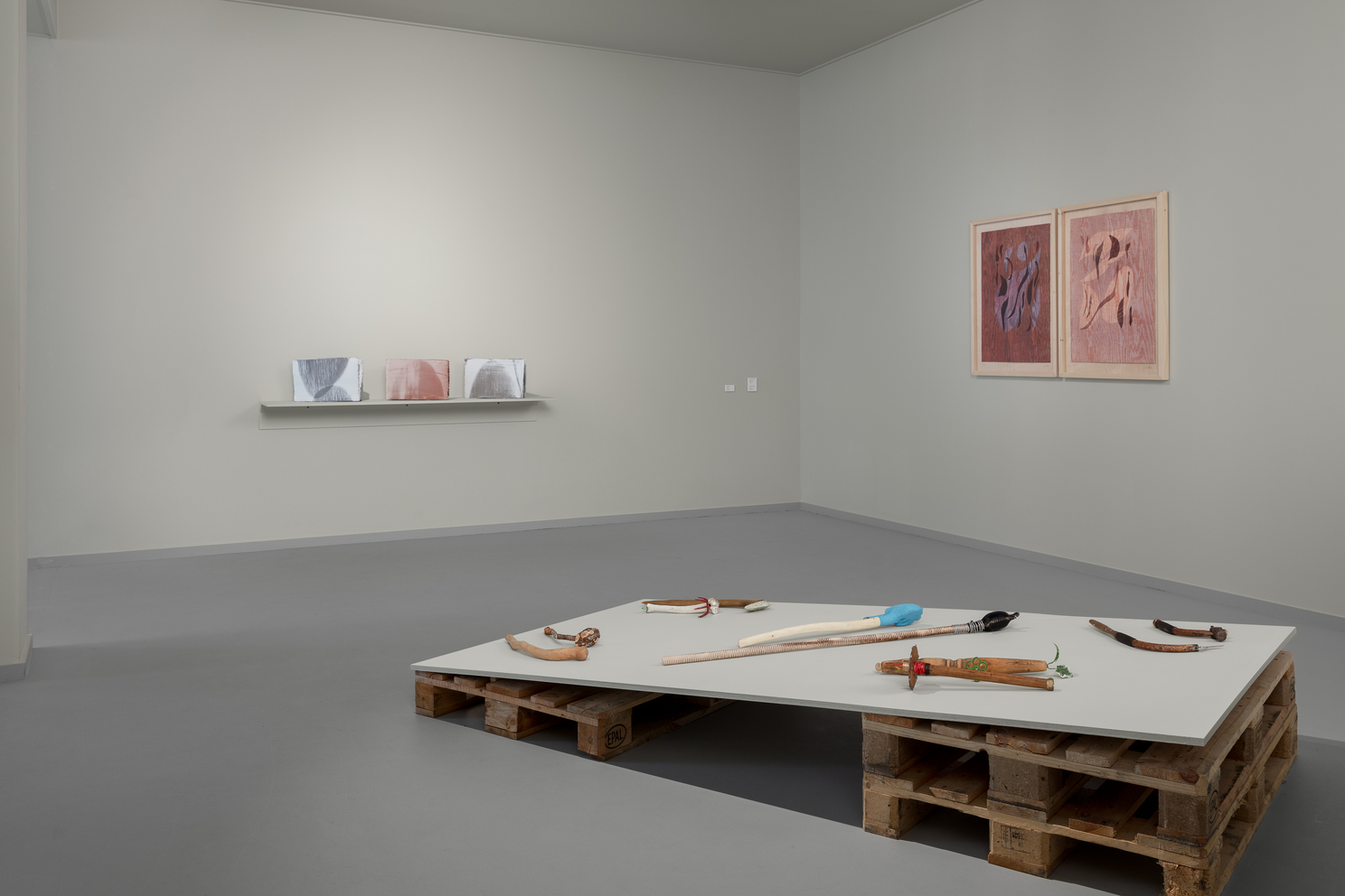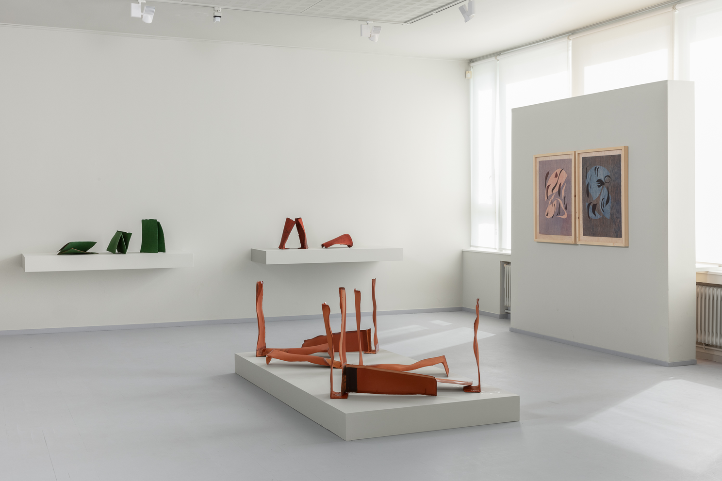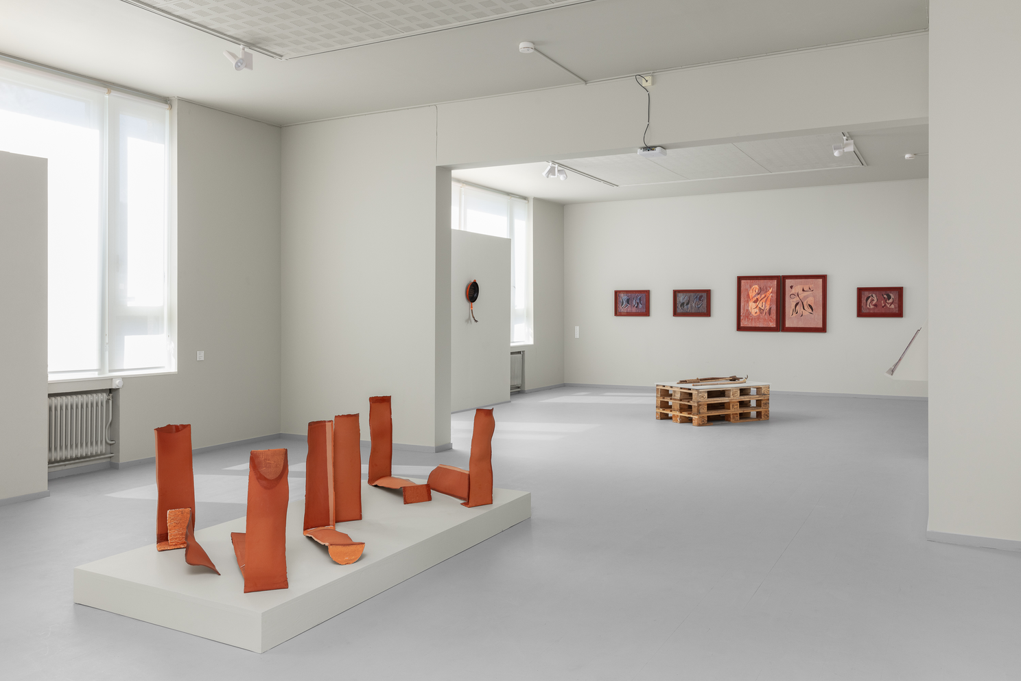 egentlig kan strekkes før det kollapser, og hvordan leire og glasur beveger seg sammen. Hennes verk er abstrakte og monumentale i uttrykket, men gir assosiasjoner til både språklige tegn, arkitektur og natur. Hun viser verk som innbyrdes skaper en dialog i rommet, plassert på lav sokkel, på hyller samt et nytt verk direkte på veggen.