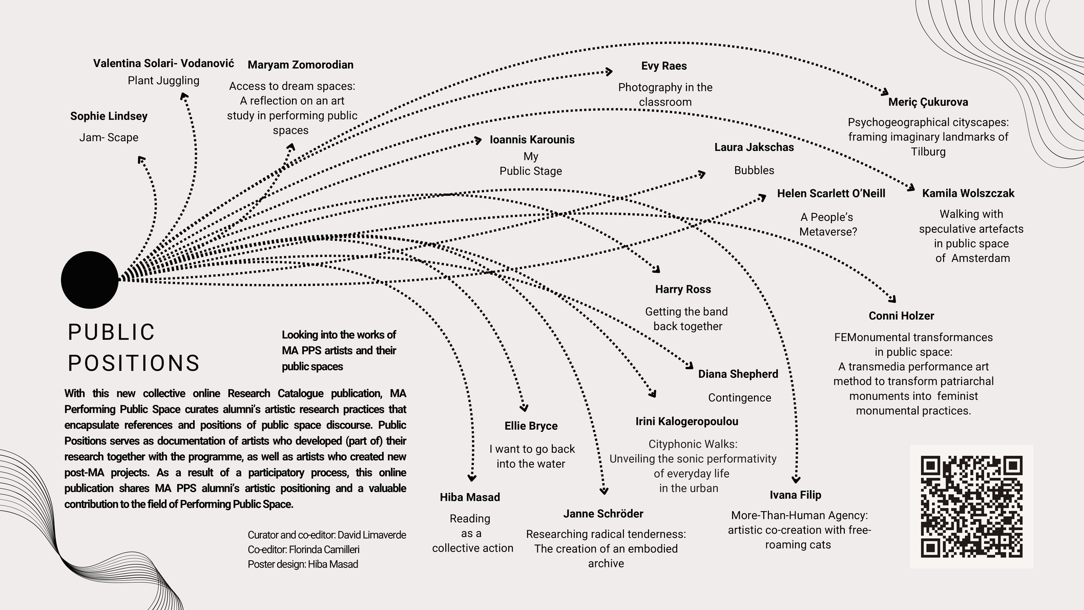 Public Positions - looking into the works of MA PPS artists and their Public Spaces. With this new collective online publication, MA PPS curates past and current alumni artistic research processes and practices that encapsulate references and positions of public space discourse. The publication serves as documentation of artists who developed (part of) their research together with the programme, and that shares their valuable contribution to the field of Performing Public Space.