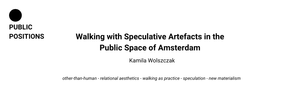 This article explores walking as a research practice in the urban public space of Amsterdam. This text brings selected observations and prototypes from artistic research together with experiences of participants from the "Walking back to Amsterdam" walkshop during the Walking as Research Practice (WARP) Conference in 2022. It is my drift between the vision and the reality of life lost and found in broken artefacts in the city, from a general look at the body of the city to discovering its details and dirt from the cracks. I aim to look through a magnifying glass held by a walker, who regulates the zoom for us. The idea is to help understand public space as overlapping layers of the many spatial dimensions – with a particular focus on the materiality (physical space) and the imaginary (symbolic space) – that act as social tools for new possibilities of a common future (Huber 2015). This drift asks for the creative potentiality of an ex-centric public space and for the power to “co-create communication” with other-than-humans.