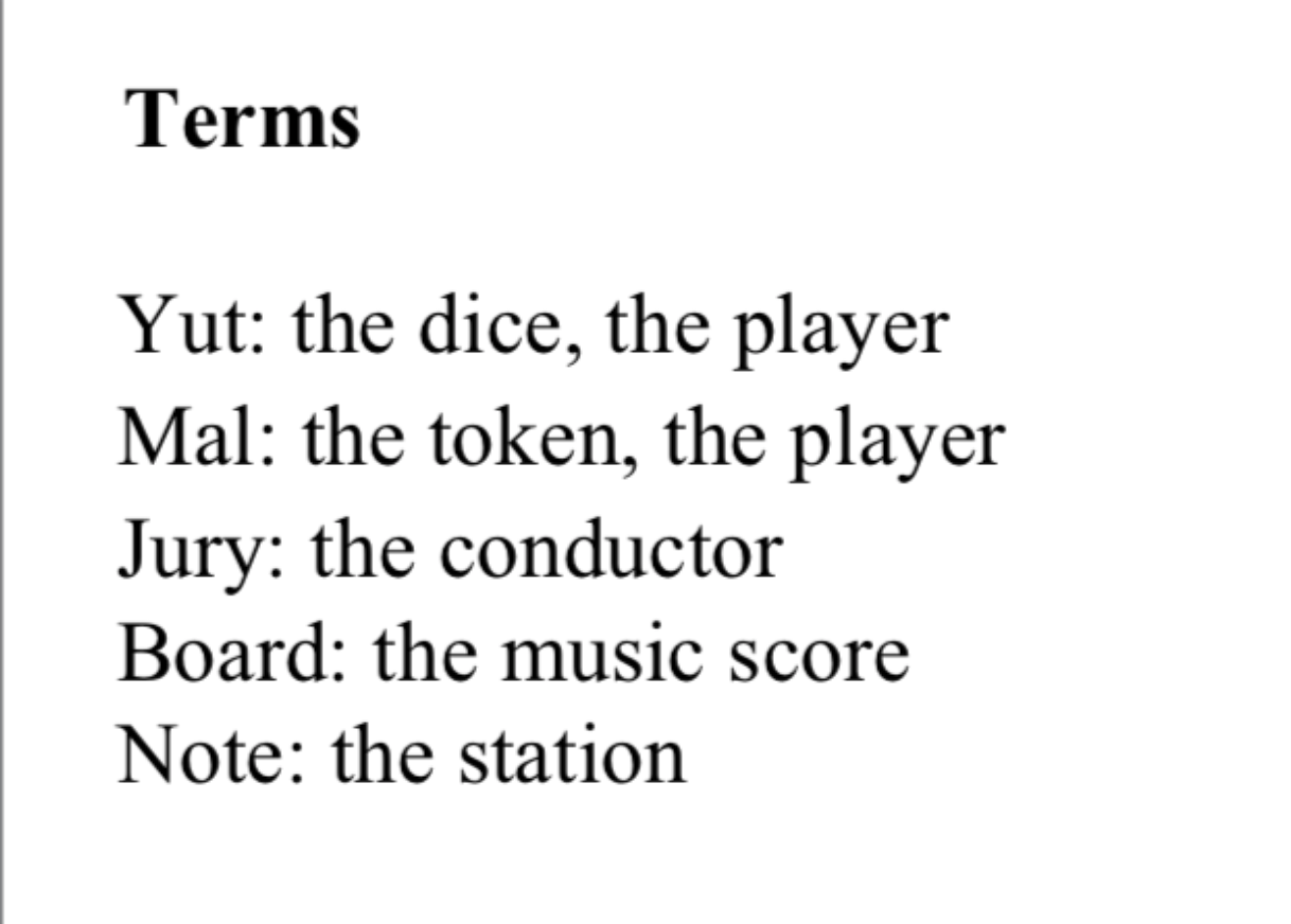 It could easily be imagined that it was this realization that determined the conception of the third of the Game Pieces produced by Il Hoon Son. Yut Nori, in fact, is a more complex piece that relies on a much less linear and directly translatable perspective compared to 20 Questions. "The musical goal/purpose/topic of the piece is to allow participants to transform the tension and emotions of the game to music. Tensions arise when one tries to read one participant’s intentions and strategies, and interrupting them has just that effect." The emphasis on the interpersonal dynamics of the players is thus an important parameter. However, the Korean author still maintains a translational approach to certain specific parameters of the game.