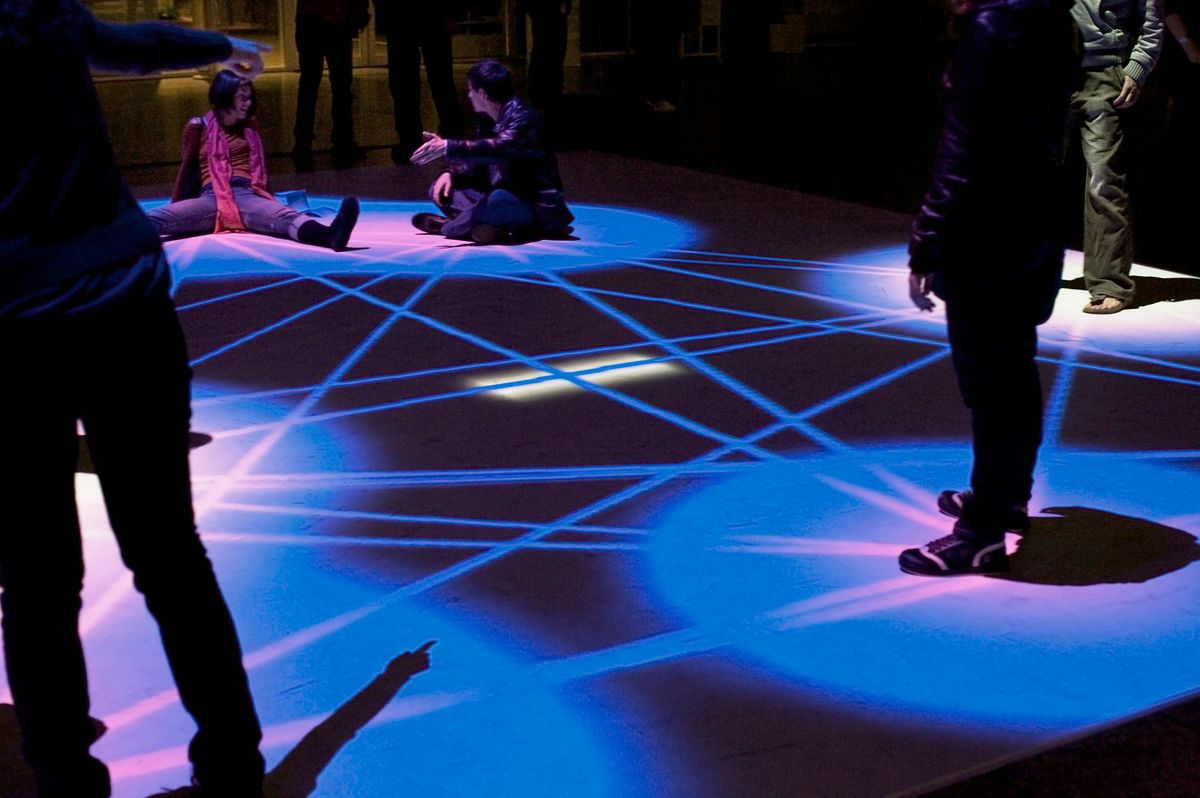 Moreover, moving outside the musical field there are also many other artistic forms where play exists alongside other media beyond audiovisual: one of the most characteristic is, for example, Daan Brinkmann, with his Lines, an interactive composition based on audience participation, in which lights and sound interact with the audience. The author defines the piece as "an audiovisual web of social connections," which sounds quite appropriate considering even just the installation's graphics. "People are invited to participate in a playful experience," continues the author, “A projector draws lines between participants, engaging them in a social web. The physical distances within this web are used to synthesize sound and rhythm.” It is worth noting that although the composer referenced "playfulness," which may seem distinct from game dynamics, the latter are actually quite fundamental to enabling interactivity, and therefore, integrated in the system. While not essential, as the experience can also be enjoyed in a calm and serious manner or through other non-playful approaches, the specific graphical elements used, along with the immediate responsiveness of the bubbles and their ability to expand and contract based on participant position and movement, inherently evoke a sense of spontaneous play among the audience. Upon entering the performance space, individuals often find themselves pleasantly amused and inadvertently engaging in a challenge with the projections, exploring their features in an instinctive and somewhat childlike manner. There appears to be a humorously playful dynamic of challenge between humans and the machine, likely stemming from the surprise of its response to human interaction, and the hall immediately transforms into a sort of playground full of excited people eager to hurl themselves against each other, move as far apart as possible, create lines, and listen to the sounds generated as a result.