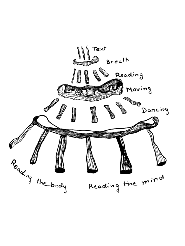 Through breathwork and partitures, the space INBETWEEN writing and drawing, moving and dancing dissolves and choreographies emerge out of this.