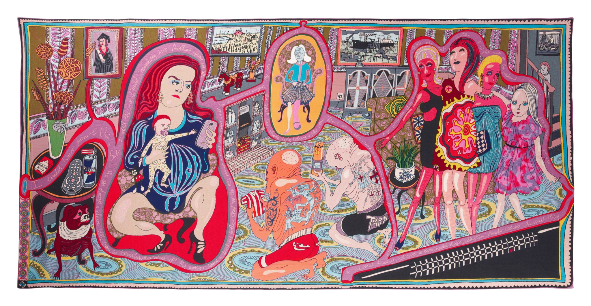 Such an interpretation is lessened through Perry’s approach in representing working-classness. In Perry’s collection of six tapestries that recontextualise A Rake’s Progress by Hogarth (1732-1734), Perry provides a contemporary version of social mobility in the character of Tim Rakewell. The modern retelling enables Perry to investigate how working-classness is understood in the aftermath of the 20th century by providing an affectual rendering to the social mobility of his fictional character. In The Adoration of the Cage Fighters, Perry captures a working-class identity through a variety of working-class signifiers (e.g. a miner’s lamp and a Sunderland A.F.C football shirt) to convey a working-class identity to the tapestry. This again can be seen as similar to the application of working-class signifiers by Turnage. I would argue that Perry avoids this by emphasising the affectual significance of these working-class signifiers in representing the intergenerational change to working-class communities, from an occupational community (the miner’s lamp) to a cultural community (the A.F.C. football shirt). Through the miners’ lamp combined with the A.F.C football top, Perry has provided both past and present understandings of working-classness by situating these objects next to each other. In providing the affectual significance of community through these objects, Perry has encapsulated a working-class identity through his representation of intergenerational difference and the objects that are associated with these identities, thereby providing depth to the changing ways of being between working-class communities. This enables the work to be recognised through Skeggs’ concept of ‘person value’. There is the issue that Perry’s work can be seen in providing an aesthetic disposition through his use of tapestry. Perry’s reasoning for using tapestry is to enable an ease of accessibility in presenting the works (in both transportation and ability to be reprinted), however the artistic form still has a history of high-cultural significance and it could be perceived to be providing an aesthetic disposition to validate the working-classness.