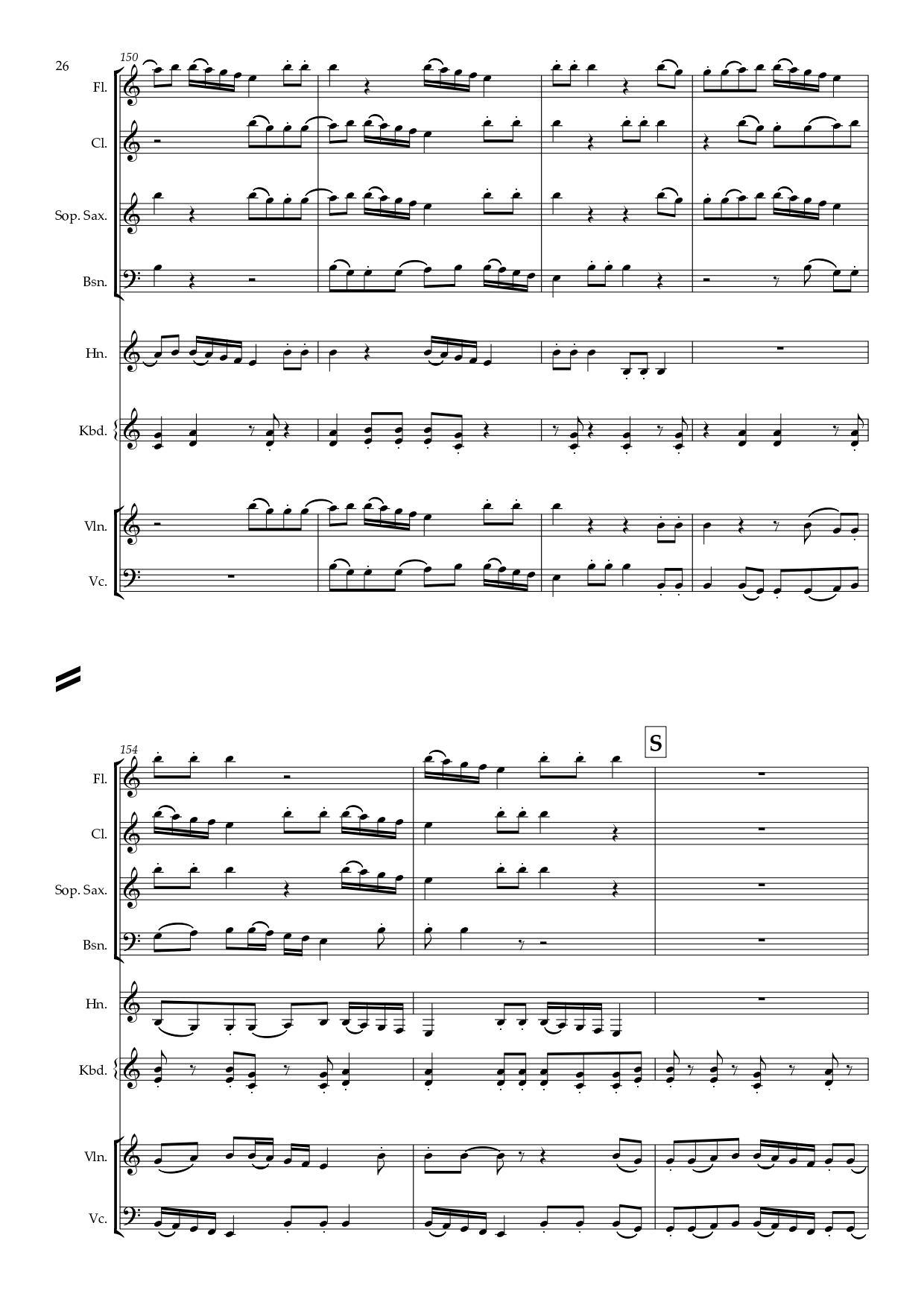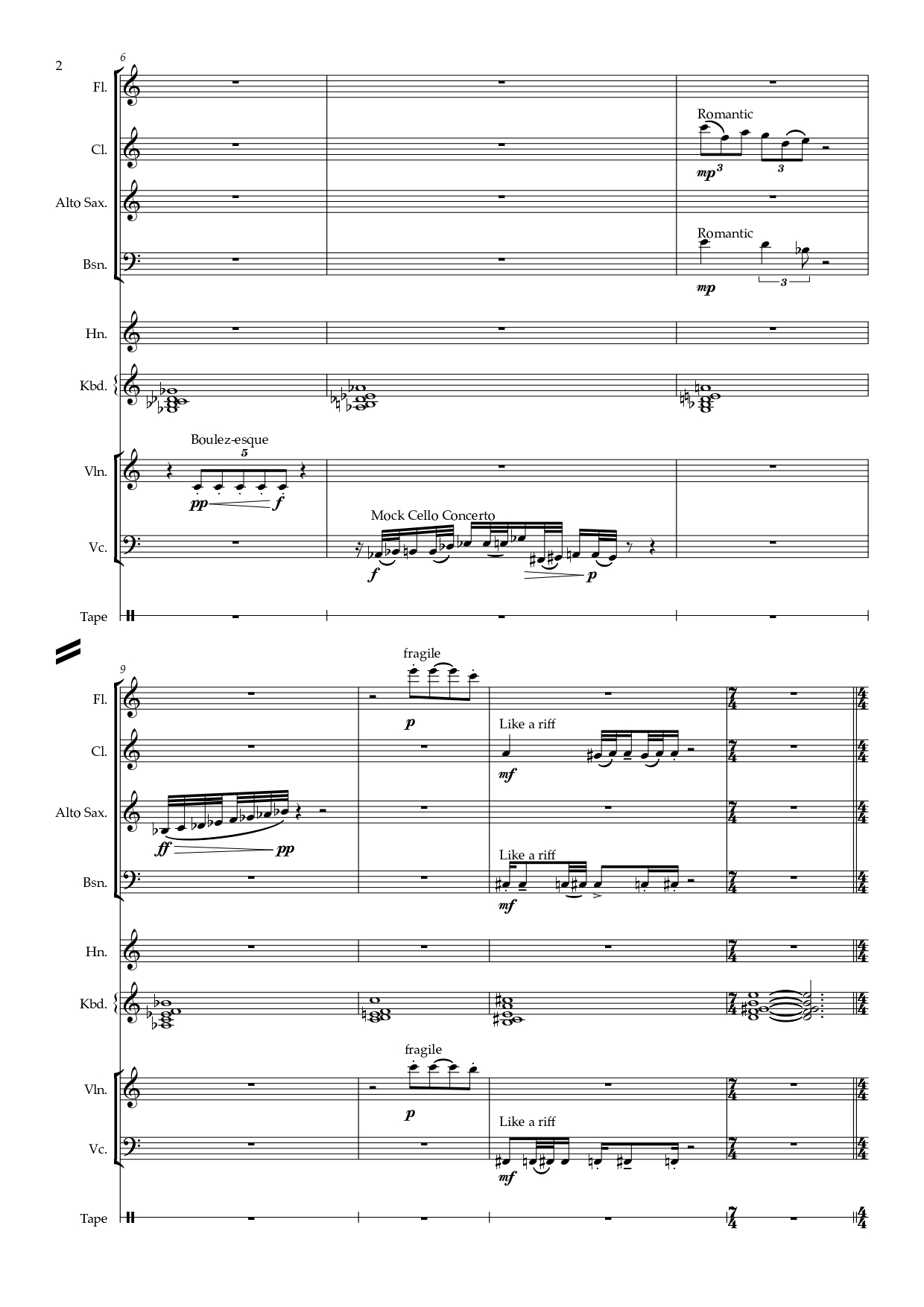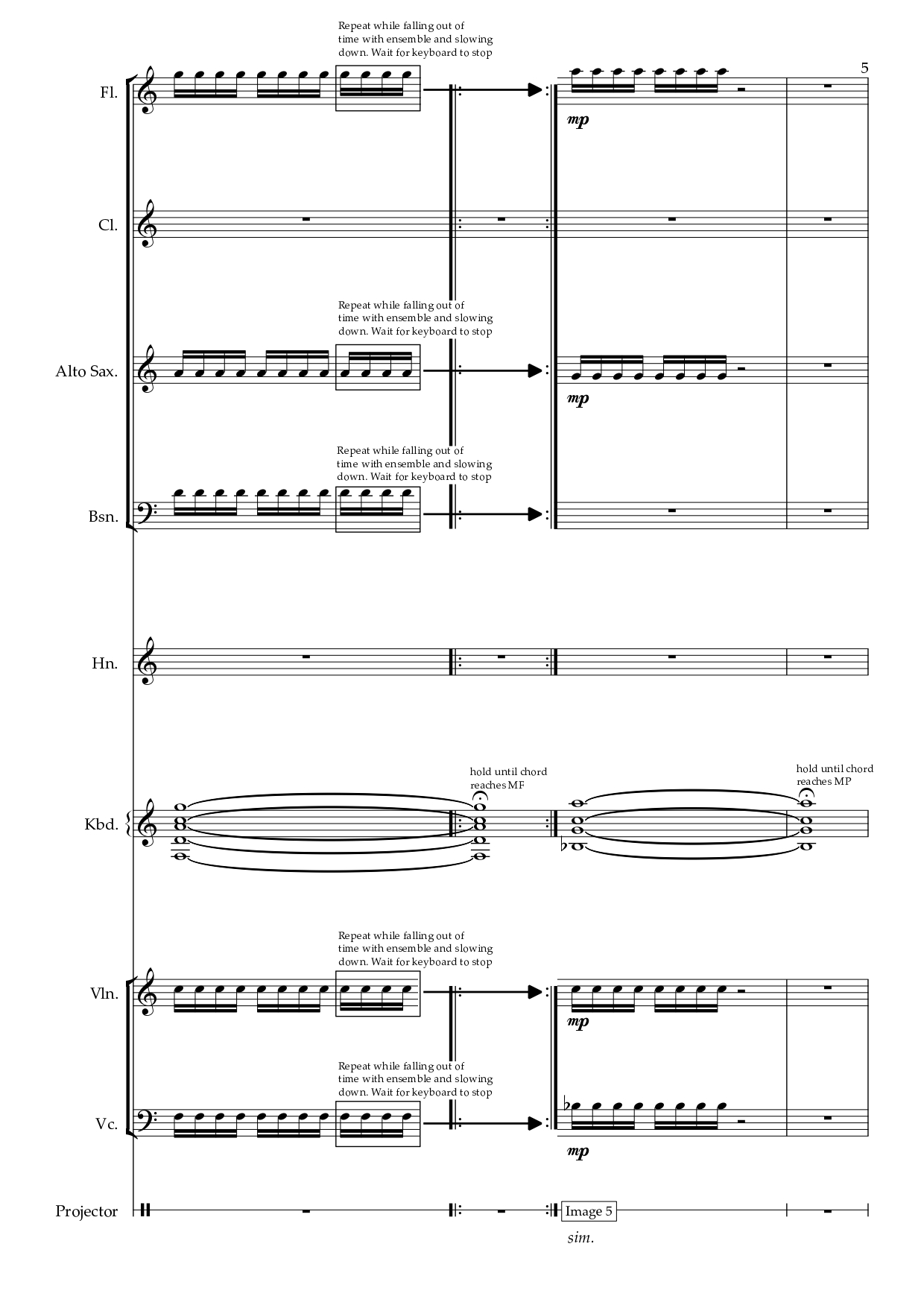 1. The ensemble play a hopeful melodic motif that shrinks as the piece develops, similar to 1. Expiration Date from Seven Working-Class Time Pieces, CiT1 and CiT3. Please click on images to enlarge.