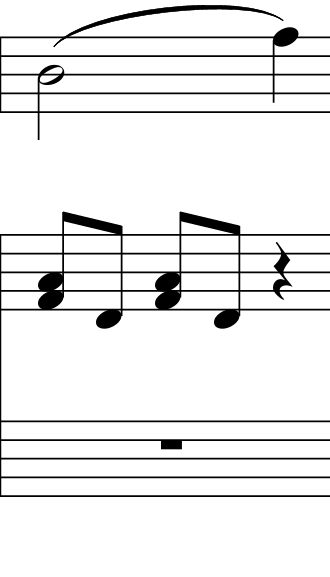 1. 1. A chordal motif in the ensemble accompanied by the keyboard providing repeating octave leaps to give rhythmic interest, CiT1 and CiT5.
