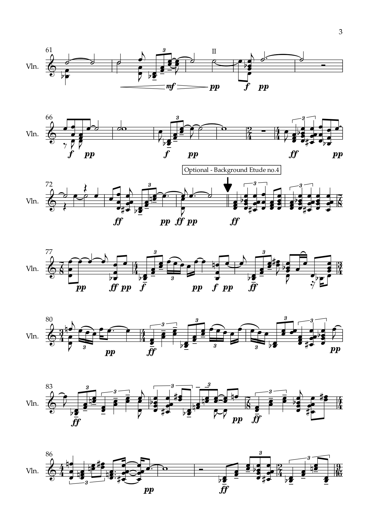 By having a series of etudes taking place across a period of time and interrupting the main musical component, the working-classness is embodied into the emblematic classical music to provide a new consideration for how we deal with history, both a working-class history and a classical music history. To provide a greater relationship between the film etudes and the live music, the music within the film etudes connects to the live music. By having sections of the live music be paralleled in the film etudes (film 4 and film 5), a misshaping of time is created where the film etudes are providing a hidden history to the learning of the live music. In showing this hidden history, the composition enables a greater consideration towards how environment may affect the learning of an instrument. This enables a greater connection between the live music and the film etudes to strengthen the embodiment of the working-classness into the classical music.