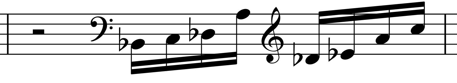 1. 1. Harmonic modulation mirroring the potential outfit choices resulting in a boring outfit being chosen and the theme being changed from Eb Major to F# Minor, CiT6. Please click on images to enlarge.