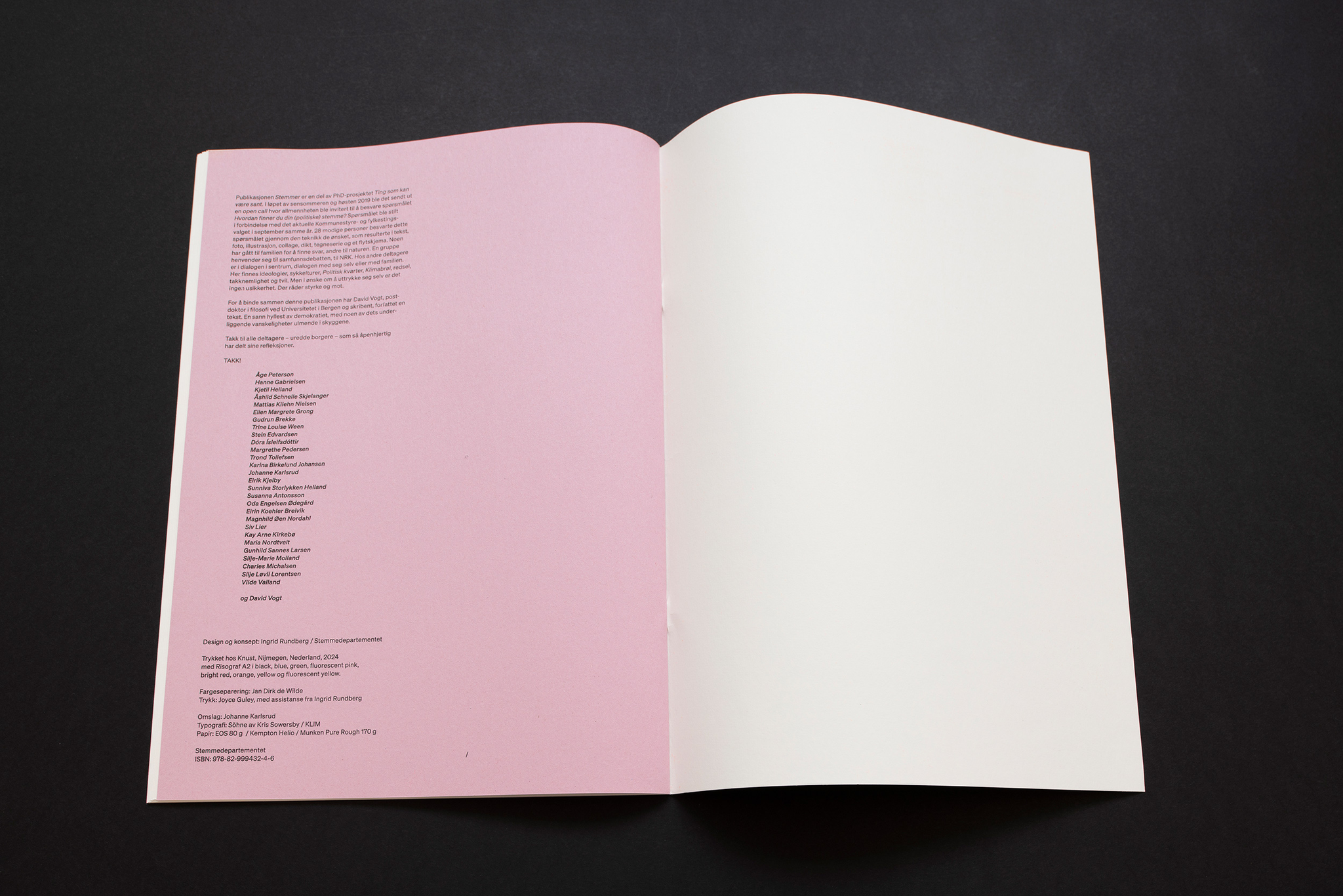 To bind this publication together, David Vogt, postdoctoral fellow in philosophy at the University of Bergen and writer, has written a text. A true tribute to democracy, with some of its underlying difficulties simmering in the shadows.