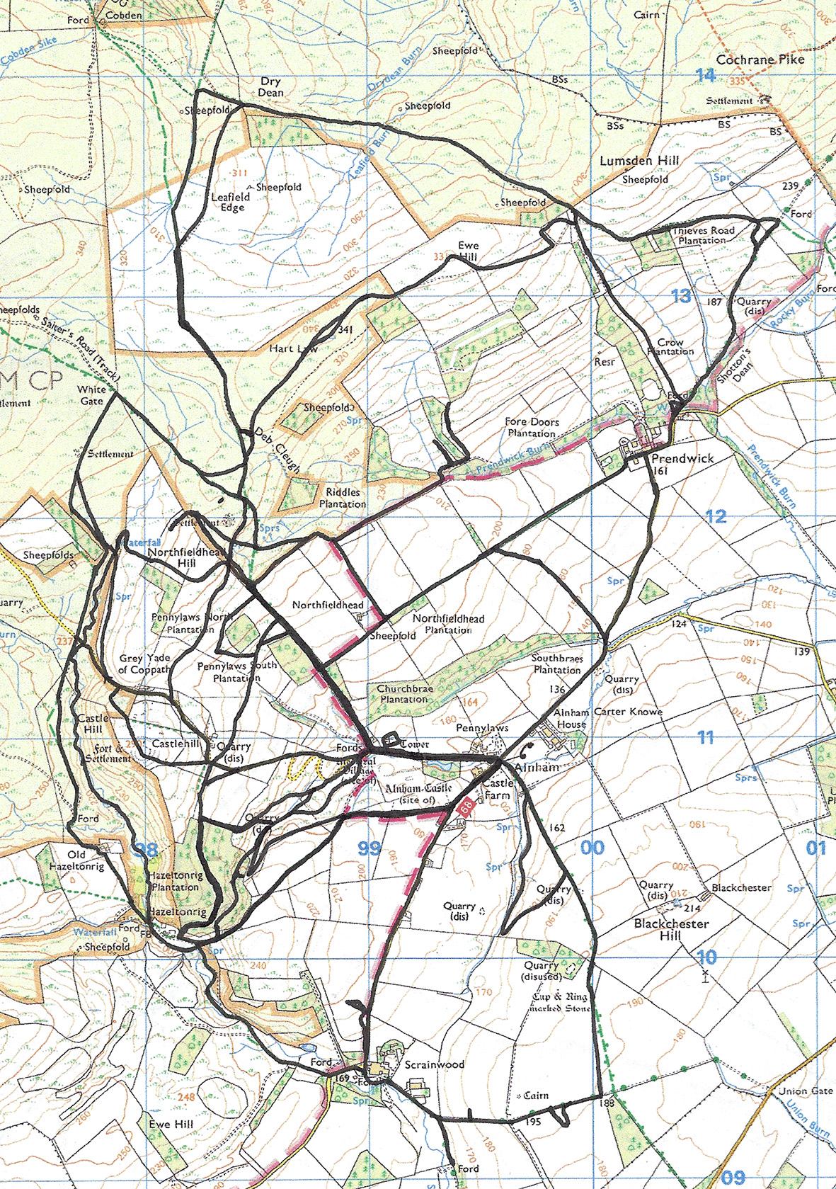 four rants for the summer solstice, was walked during the summer solstice of 2017, and as I was creating it I was aware that I was walking along a number of the same paths on multiple steps of the rants. Tracing out the routes that I used to navigate my way between the locations, rather than the ‘as the crow flies’ lines of the score, began to identify these common routes, traces that formed an integral part of my walking there. So, when my walking at this scale was applied repeatedly it traced out a walked edge, a lived boundary, a limit of my embodied walking. When I added regular routes I had walked when doing bird counts, and those walked during other ad hoc visits, a shape began to emerge.1 The lines started to create an edge, an outline, and the shape on the map began to remind me of Fair Isle, or Papa Westray, or Beàrnaraigh. Whilst still an outline, it was becoming a shoreline, and so emerged the idea of the creation of my own imaginary island (below).