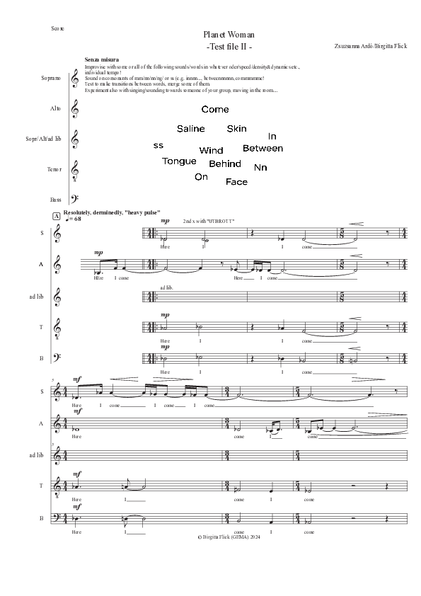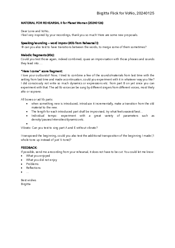 Rooted in a composer–improviser’s fascination with a musical composition’s transformative potential, this doctoral artistic research project reflects on the composition through investigating it as a trace of creative interacting. It applies an artistic working method of individual and collaborative compositional experimental setups of iteratively combined creative activities, such as notating or playing saxophone. Interwoven with autoethnographic reflection, this yields a spiral creative-reflective path that focuses both on the activities and their traces, such as notations or recordings, as well as the human being’s perceptive transformations. Drawing on artistic and sociological–philosophical specifications of the human being’s interacting with its world such as Jean-Luc Nancy’s or Hartmut Rosa’s, as well as Sybille Krämer’s and Jean-Jacques Nattiez’s conceptualization of a trace, the project scrutinizes not only the diversity of evolving relations between all activities–traces–participants as transformative tools for each other, but also seeks a new language as a creative–reflective tool in its own right. Through exploring the notion of the trace, as well as creating neologisms such as the musical Geschehen for a specific notion of created sound, a concept of creative practices as being relational and transformative emerges, leading to the notion of a shared creative practice as shared modes of relating. Creative practices such as improvising and composing evolve as epistemological and semantic grids that conceptualize experiences of engaging with traces, alongside an understanding of a composition as a trace that is formed by and affords specific modes of relating to the “outside” world. Artistic results include new vocal and instrumental scores, lead sheets, electroacoustic pieces, and a selection of recordings.