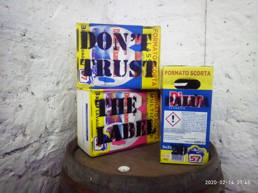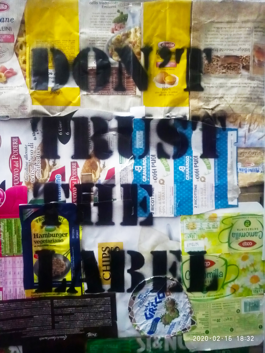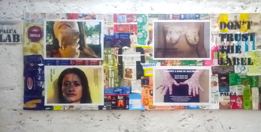 Un'opera d'arte grafica sulla complessità e opacità dei processi di produzione alimentare e la conseguente incomprensibilità di capire le etichette alimentari e gli elementi che compongono il cibo che ingeriamo.