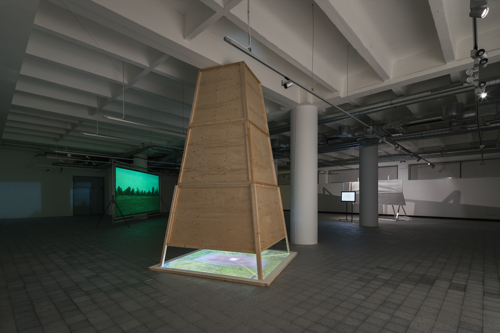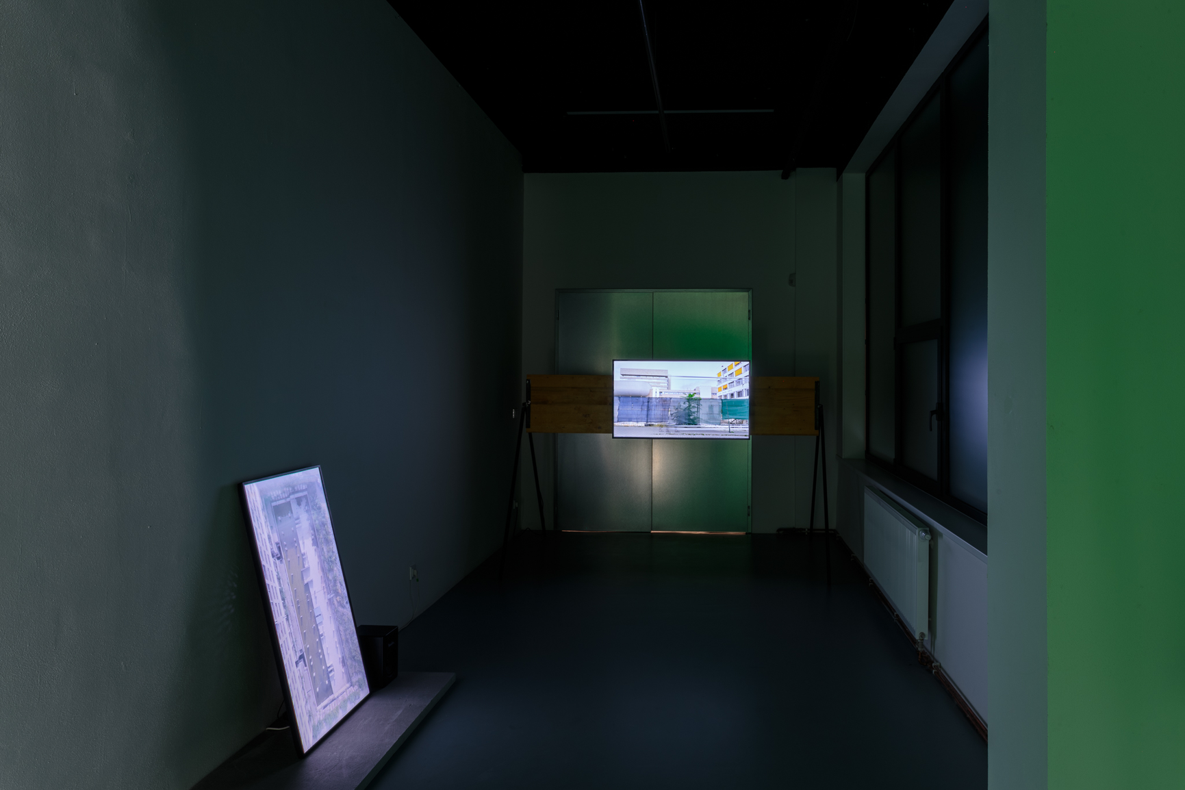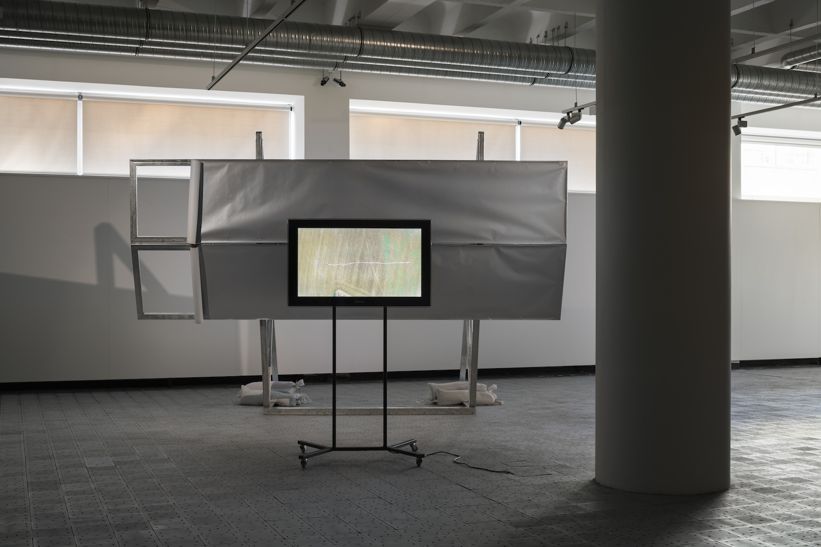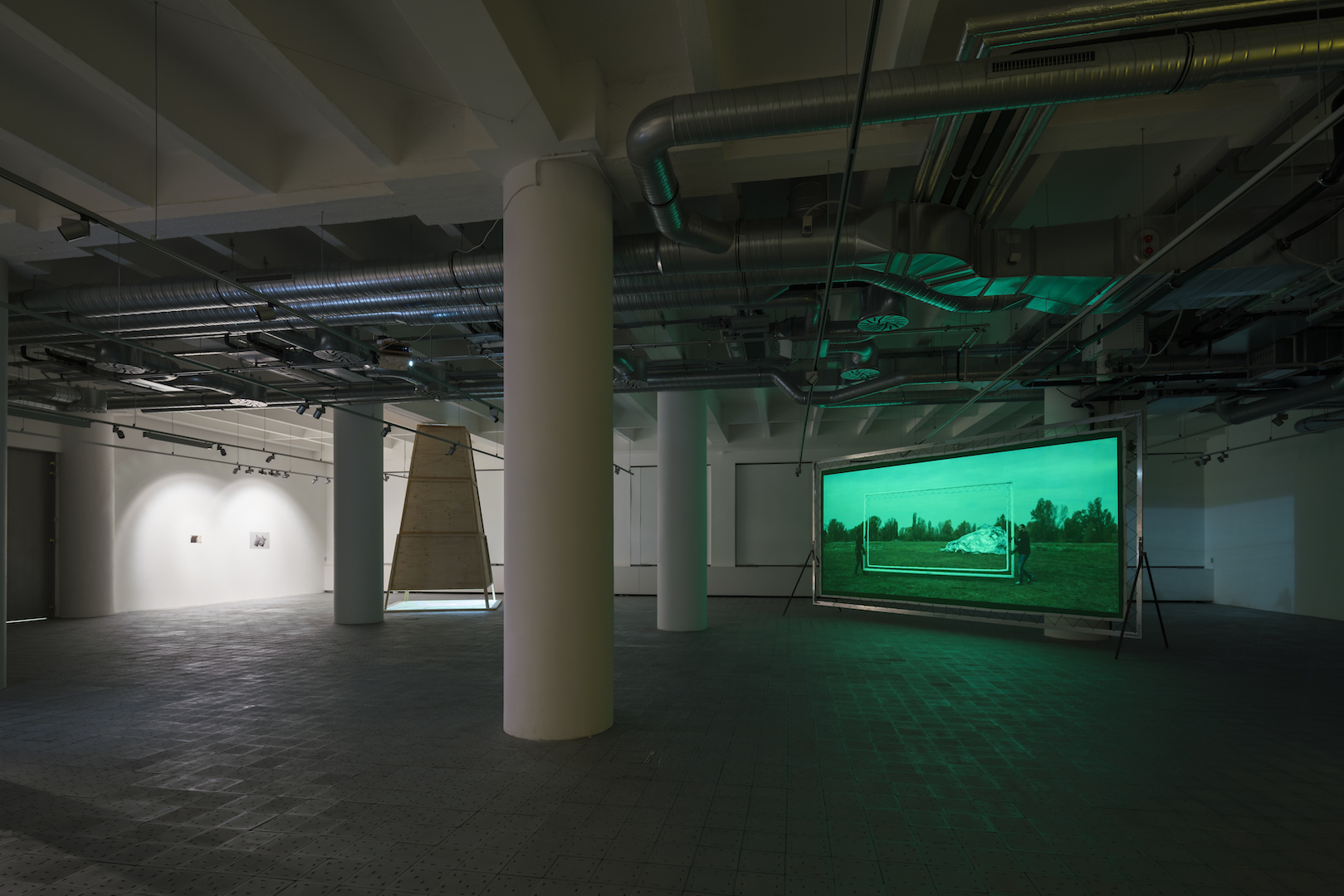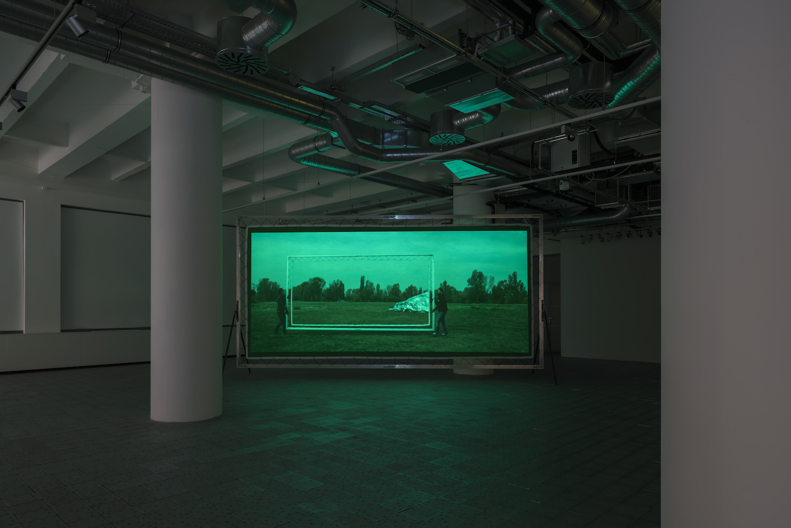 Stříbřitá pokroucená hmota, která se vyjevuje a opětovně mizí v díle Greenscreen, může evokovat shluky ztroskotaných konstrukcí na starých snímcích havarovaných vzdušných plavidel. Konkrétní obraz vycházející z historické zkušenosti přetrvává jako dematerializovaná vzpomínka. Snažím se o její zpřítomnění. Rekonstruuji událost v jiném místě i čase. Vyjevení obrazu probíhá snadnou postprodukční cestou, které ale předcházela práce s materiálem a fyzické nasazení aktérů. Zelené klíčovací plátno, použité jako rekvizita během natáčení i jako projekční plocha k prezentaci vzniklého videa, pak odkazuje k možnostem přenosu obrazů i volnosti jejich interpretace.