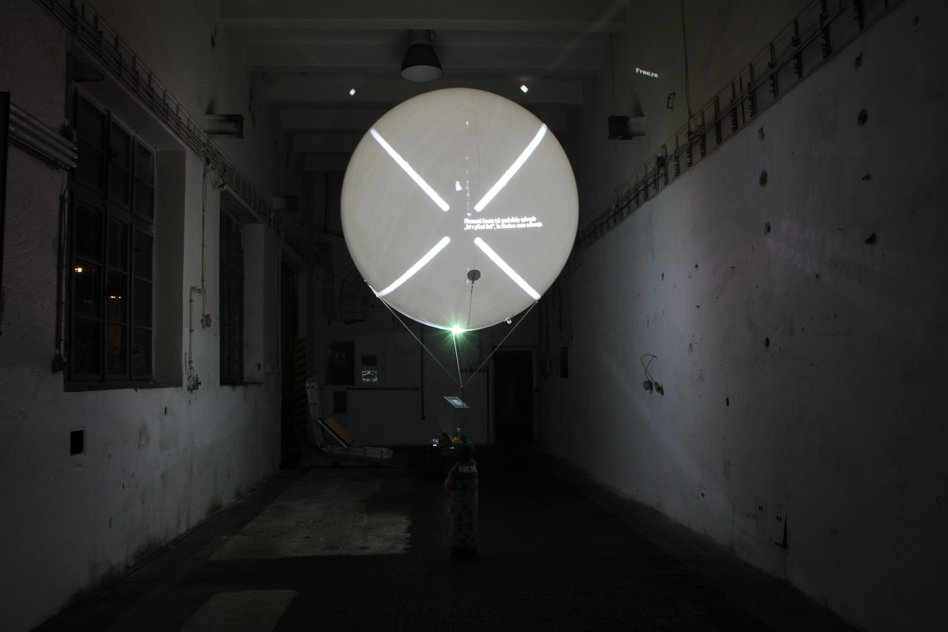 Prostorová situace v prostředí spodních Holešovic. Sérii míst navštěvuje skupina aktérů, manipulující bílý heliový balon o průměru 2 metry. Pravidelně ho vypouští vzhůru a udržují v centru dané lokality. Balon nese na spodní straně záznamové zařízení a skupina jej ovládá pomocí kotevních lan. Balon slouží jako objekt spojující skupinu. Ta je pak schopna lépe interagovat a zahrnout místní obyvatele jako participující aktéry. Společnou aktivitou je dosaženo nadhledu nad současným stavem lokality. Situaci lze číst i jako připomínku počátků aviatiky, nebo reminiscenci na civilstní motivy někdejší pražské periferie (nedaleký Libeňský plynojem). Projekt má charakter dočasných akcí ve veřejném prostoru. Neprobíhá žádné kotvení, ani osazení materiálu. Zůstává pouze mentální stopa, dokumentace a výzva k pokračování na dalším místě.