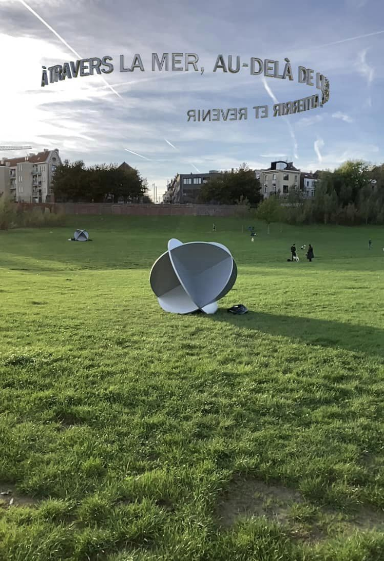 Trojice objektů slouží jako kotevní body virtuálního sdělení. Nad každým z nich se vznáší rotující text, prezentovaný v rozhraní rozšířené reality. Je možné ho dekódovat s pomocí mobilních zařízení, při fyzickém pohybu v okolí. Sochařské objekty jsou apropriací tvaru používaného v námořnictví. Jedná se o takzvaný radarový odražeč, jehož tvar i materiál podporuje viditelnost malých plavidel na radaru velkých lodí. Trojice vzájemně kolmých ploch vytváří ve svém středu odrazné ohnisko a dopadající paprsek signálu vrací nazpět. Drobná lodní výbava je převedena do samostatných sochařských objektů o průměru 200 cm. Jejich poziční rozmístění v parku Tour et Taxis vytváří tři vztahové linie vzdálených bodů. Podobně jako v základním konceptu celého projektu Parallels, i zde vzniká dočasné spojení několika míst pomocí tušené trajektorie. Diváci tak dotváří potřebný kontakt a komunikaci vzdálených center. Při svém pohybu čtou obsah poetického sdělení a v představách opisují trajektorii podobnou textu: přes moře, za horizont, na pevninu a zpátky.