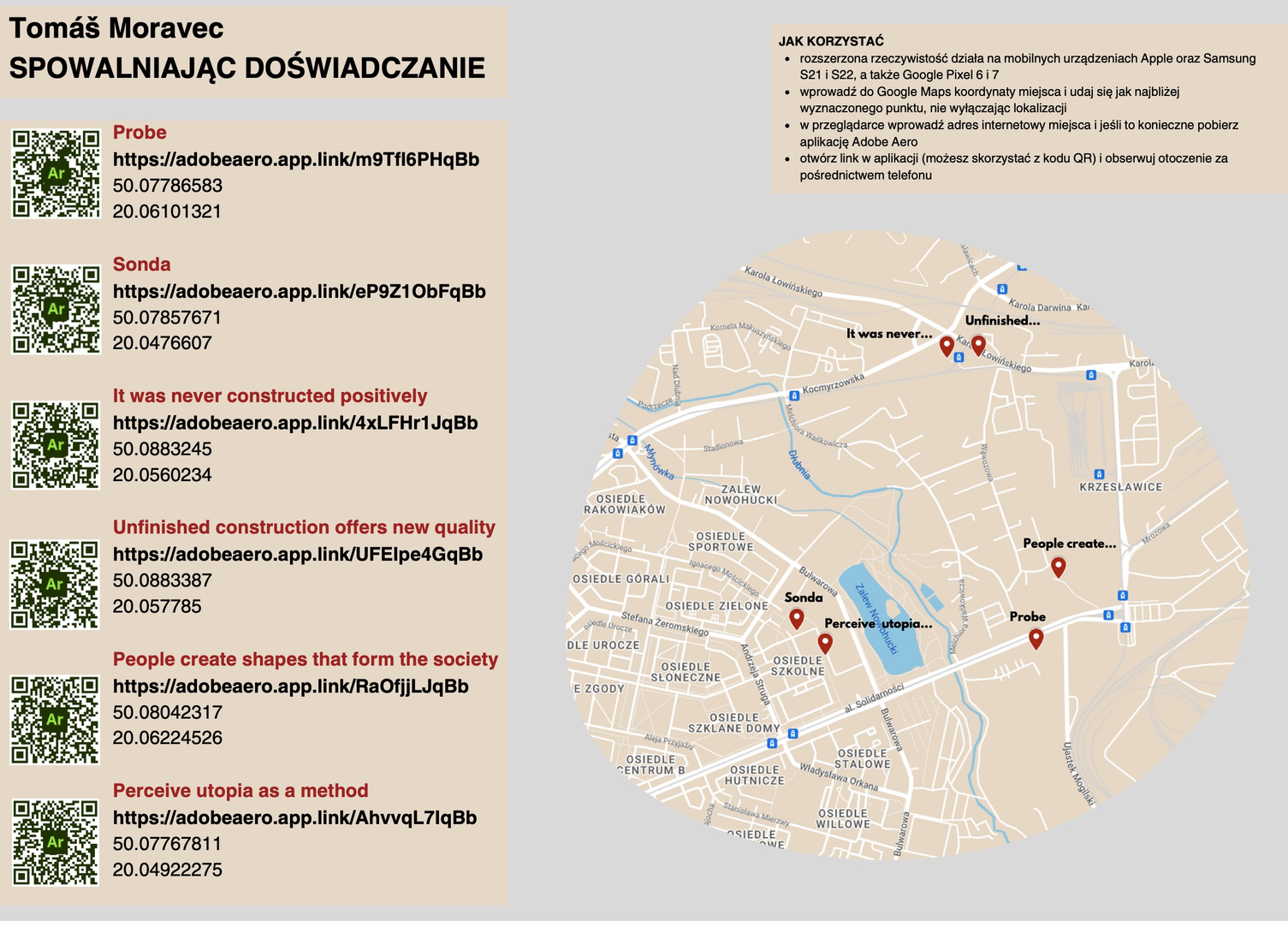 V okolí sídliště Nowa Huta probíhá výstavba dálničního obchvatu. Jeho realizace se na severovýchodní straně lokality střetla s dříve postavenou infrastrukturou. Porovnání satelitních snímků se současným stavem místa odhalilo několik obytných domů, které musely být nedávno zdemolovány i zpřetrhané pěší cesty, které nyní vedou oplocenými koridory skrz transformující se pustinu. Dystopický obraz proměny města byl umocněn jízdou tramvaje přes zastávku Wiadukty. Ta byla stále aktivní v provozu hromadné dopravy, ale již mnohdy nenavazovala na přístupové komunikace. Lidé, kteří zde vystoupili, nenašli své obvyklé cesty a museli se vydat skrz odkrytou reziduální poušť.