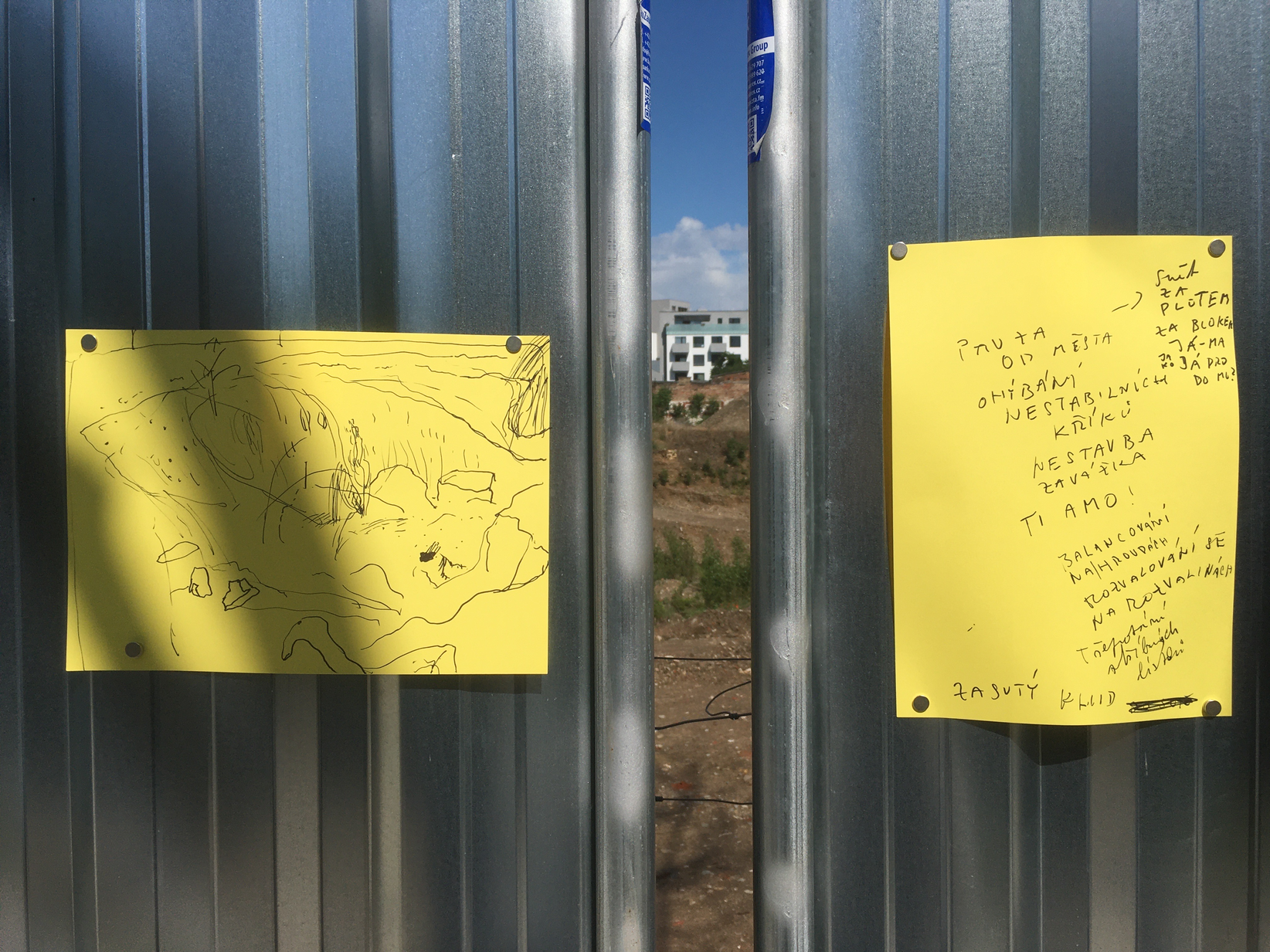 texty psané zpoza stavebního oplocení: