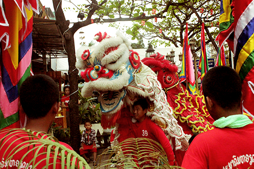 As I found myself lost in the streets of Vientiane on the eve of the Chinese New Year, the surrounding sonic atmosphere reminded me of an Italian beach town I visited when I was younger. The inhabitants of Vientiane had their barbecues on the streets and played boules while listening to old techno music from the 90s. There was even a sort of “bingo” or gaming stall on the street, where you could win plush animals, t-shirts and many miscellaneous objects made of plastic. This lively atmosphere with all the human voices and music was a contradiction to the usual "ghost town" soundscape I predominantly experienced in the capital of Laos. The following morning I took a walk outside of the city center, where I came across a traditional New Year’s Ceremony. For this type of ceremony, it appeared that many young men were walking from warehouse to warehouse, stopping in front of each doorstep and performing the “Dragon Dance.” This expressive traditional performance – accompanied by rhythmic drumbeats and clattering bells – symbolizes the historical role of dragons in Chinese culture, demonstrating power and dignity. It was interesting to note how the rhythm and dynamic of the music followed the movement of the actors. The whole production went on for around 20 minutes in a continual flow, without any break of sound or movement.
