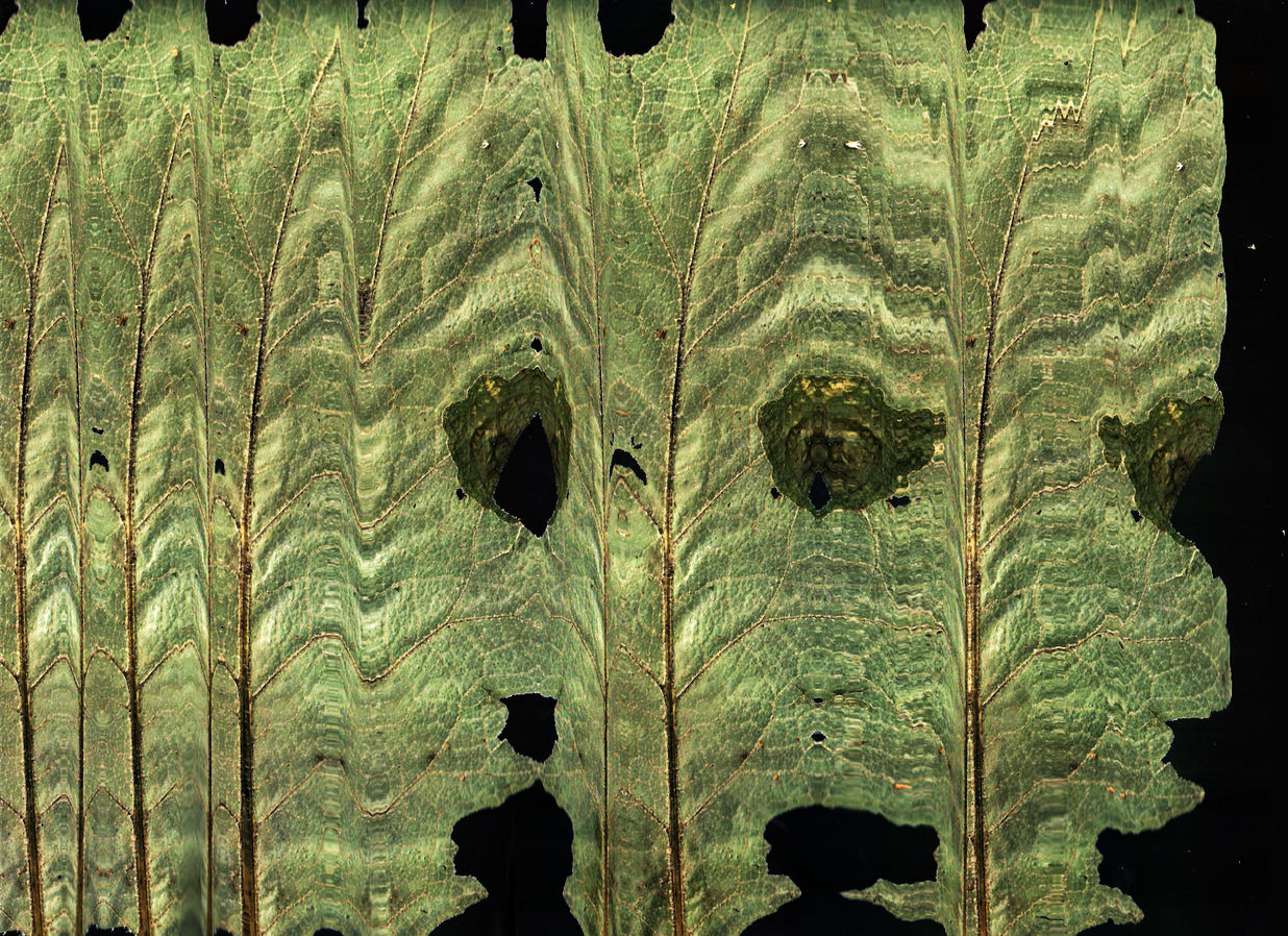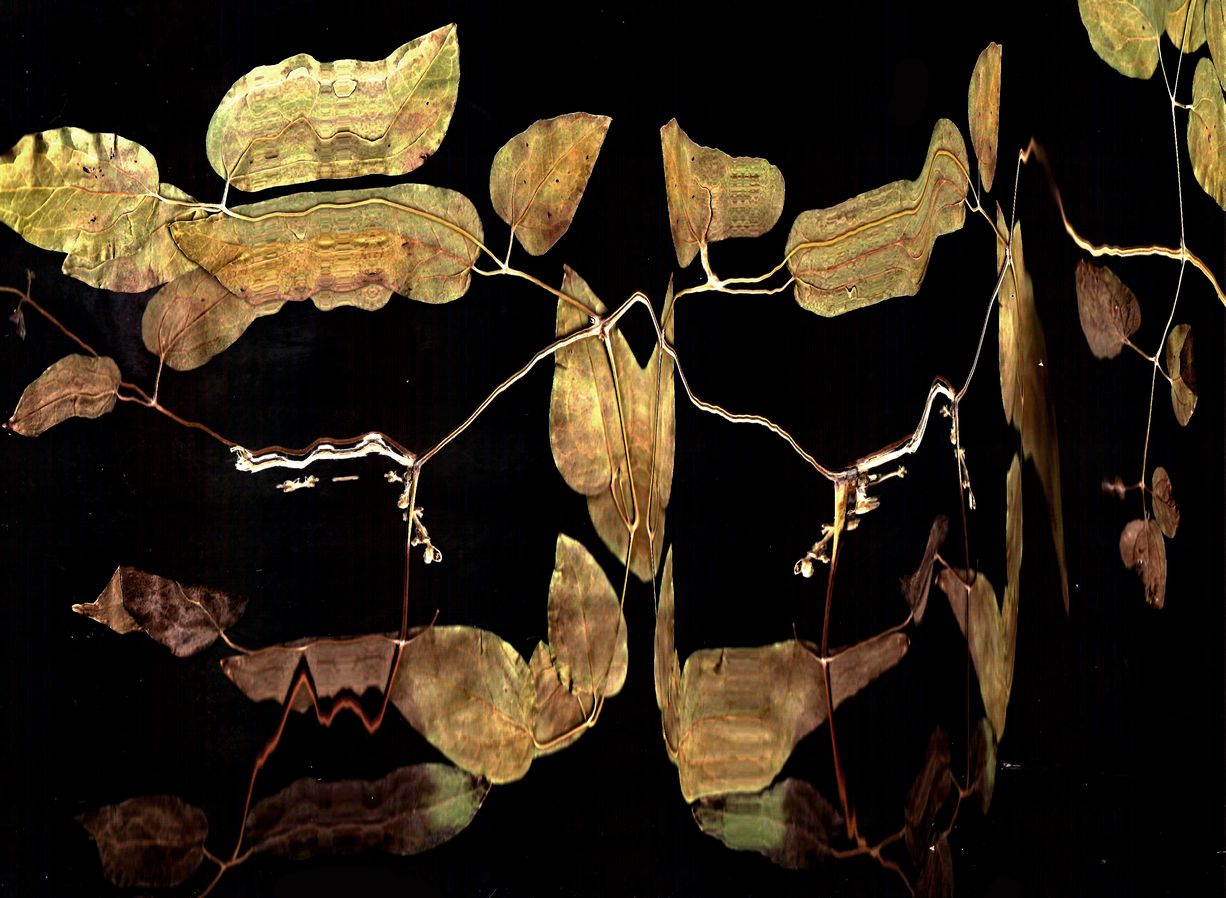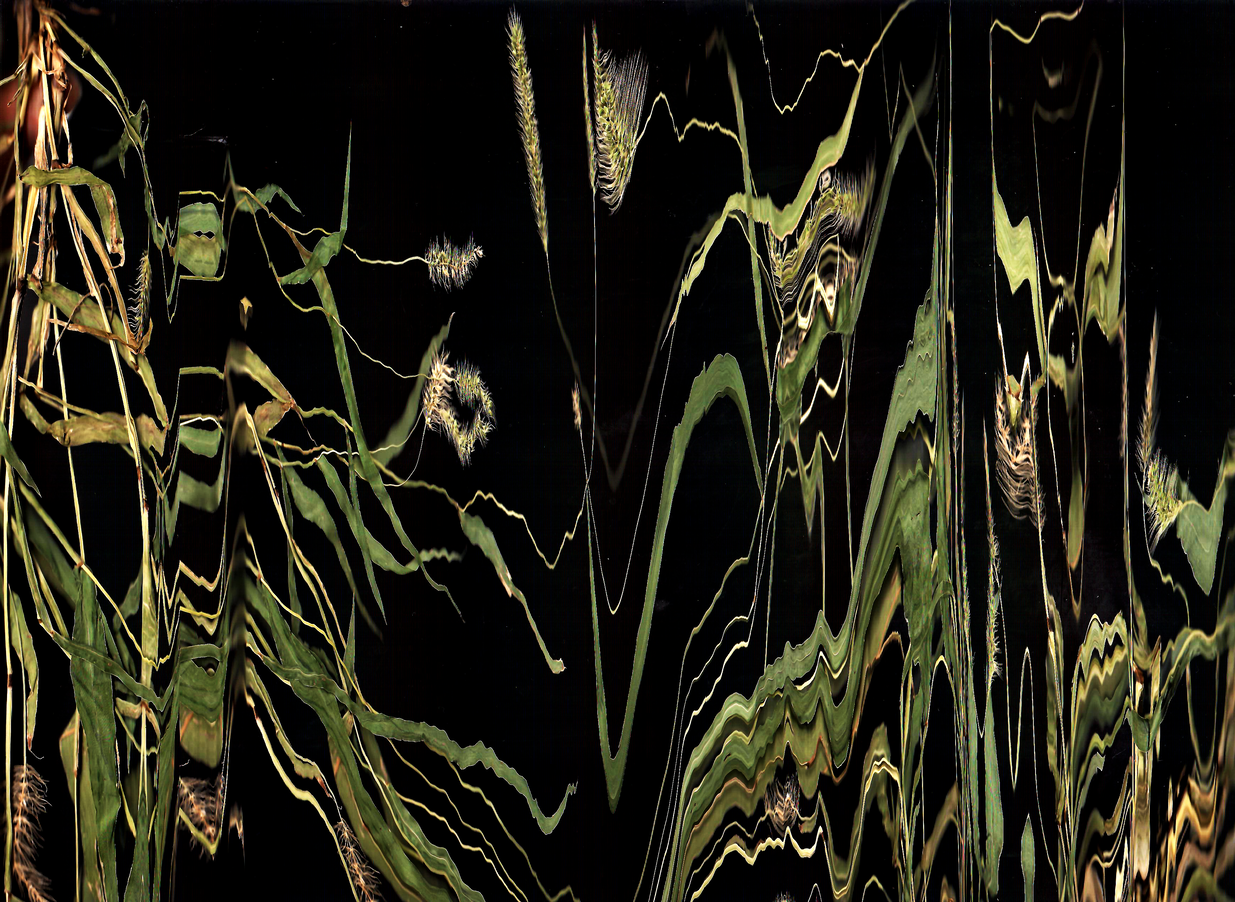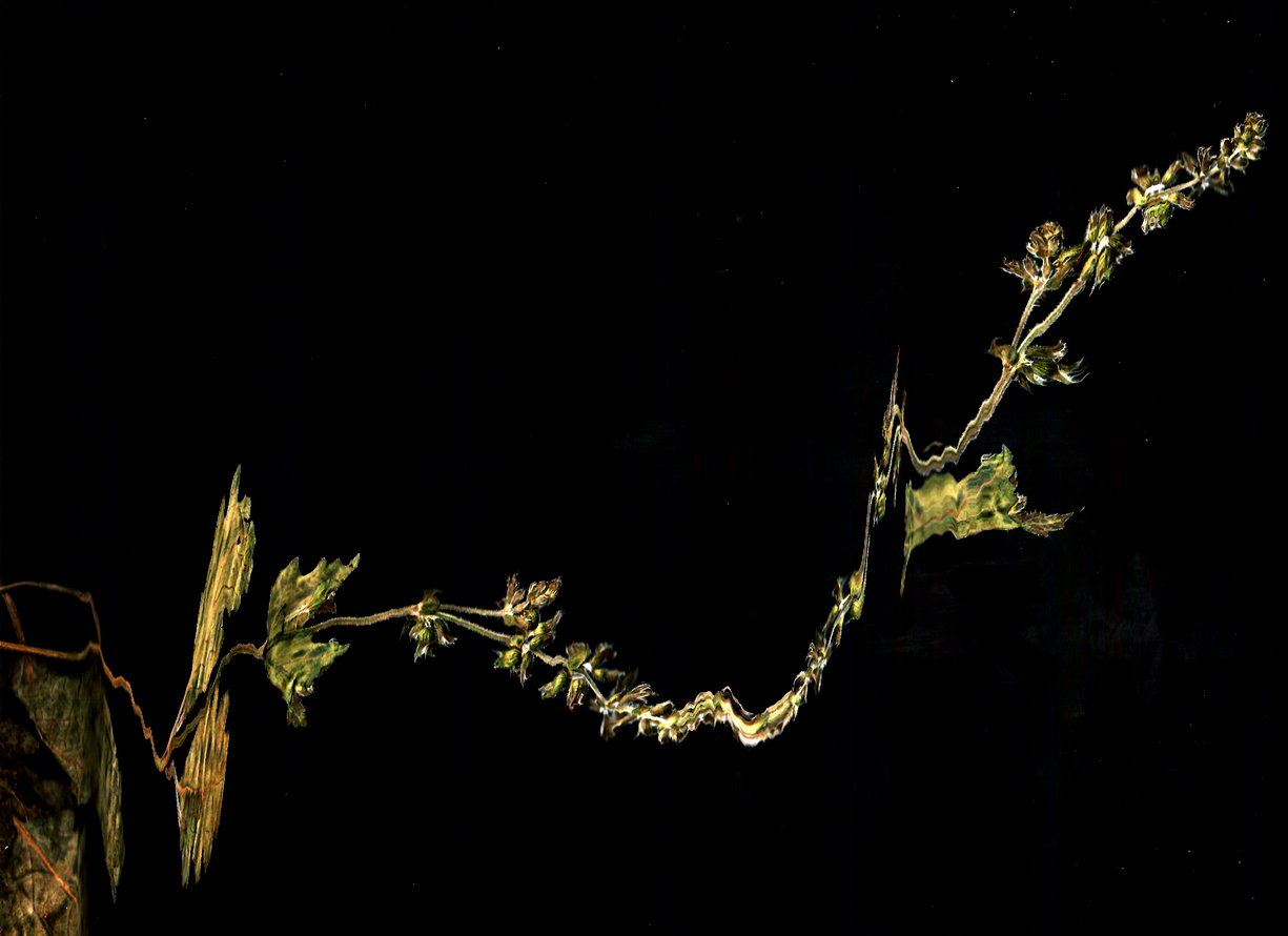 I scanned the collected weeds in motion, which caused a deformation of their original shape, generating abstract patterns, which appear to vibrate.