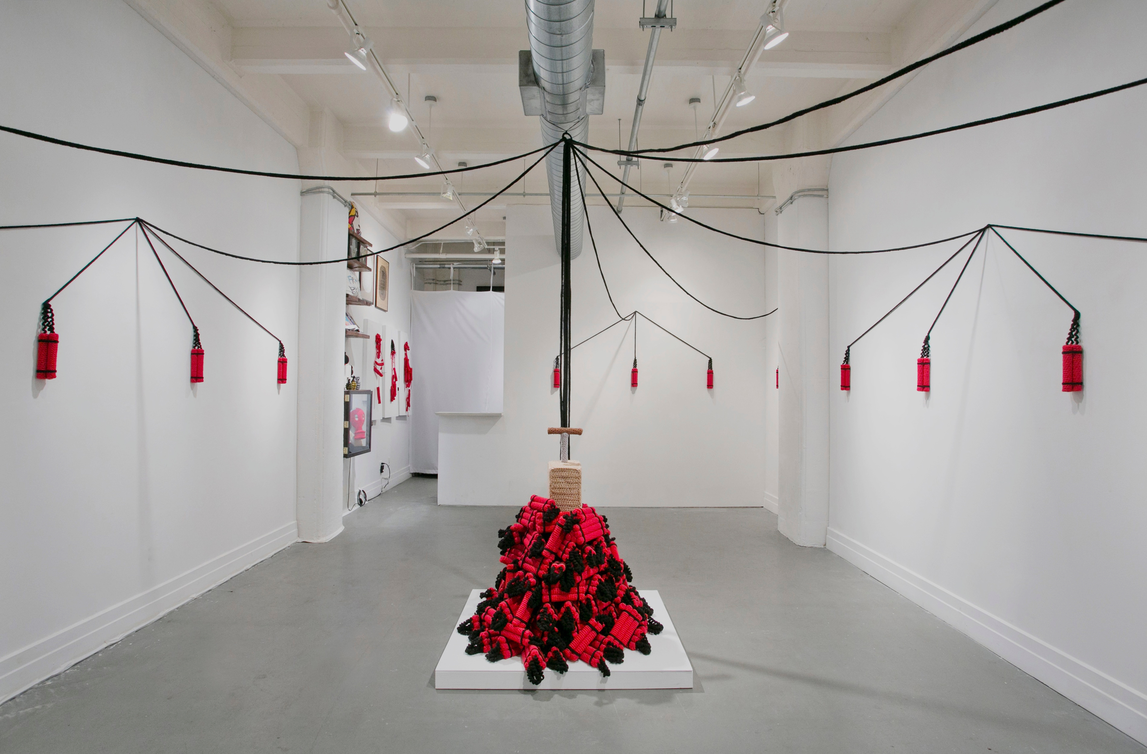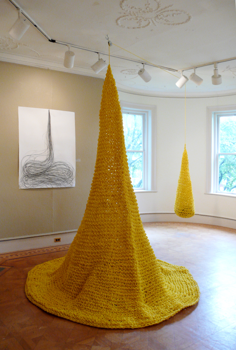 While working with traditional female needlework such as crochet and embroidery I was thinking of the specific eanings that these techniques contain in themselves. This made me think that this can make it another medium of contemporary art as far as it is used more broadly in art projects nowadays. As the painting has its own specific meanings of the medium (the flatness, illusion, etc), knitting, for example, is associated with something warm and cozy, harmless and mostly female. That is why conceptualizing these specific qualities of knitting can also bring more complex meanings of it as a medium itself.
