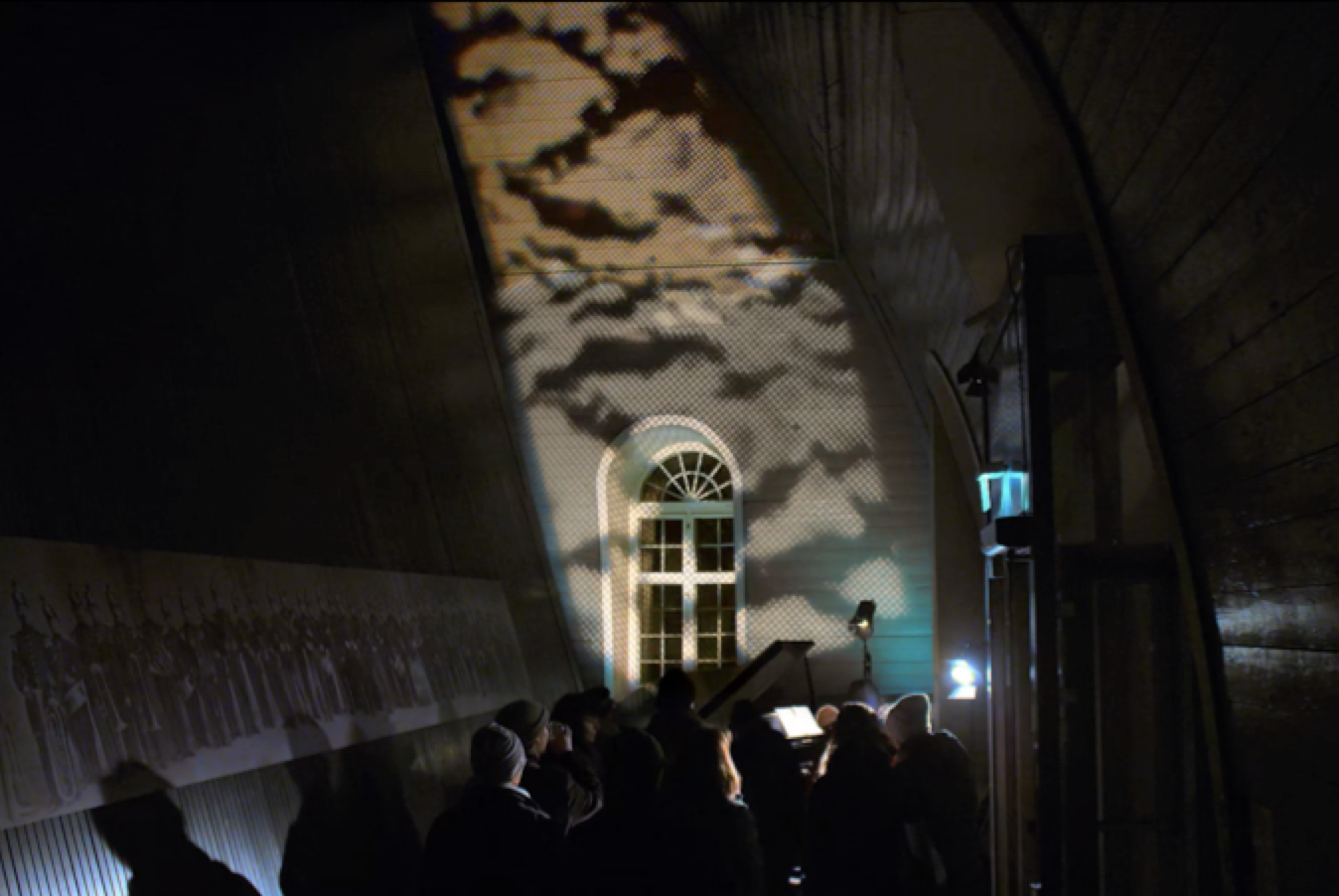 I am sitting facing a bay window in a side room at Ridehuset in Oslo. The window is glowing beautifully in tones of pale grey. I am wearing a woolly hat, fingerless gloves and several layers of thin wool jumpers – the December weather is icy cold. Behind me, people are being let in, but I’m not looking at them because I am turned towards the grand piano and the window, waiting, but I feel their presence strongly and can hear heavy boots striking the stone floor. I sense the audience as a massive yet moving weight on my back. Some of them sit on the floor, while others remain standing.