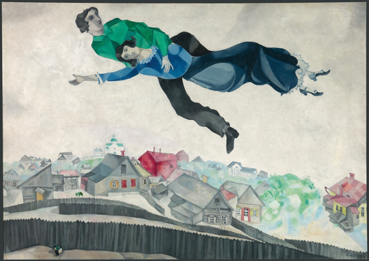 Marc Chagall, “Over the City” (1914 – 1918) oil on canvas, 139 × 197 cm, National Tretyakov Gallery, Moscow (© Adagp, Paris 2018