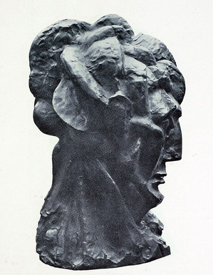 Pablo Picasso, 1909–10, Head of a Woman (Fernande), modeled on Fernande Olivier. Photographic reproduction of a bronze cast (right side). Dimensions unconfirmed: 40.5 x 23 x 26 cm