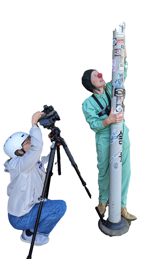 In this case, the creation of such a public sphere both in the space of the camera and on site, was approached not only through the character’s relationship with the cameras, but also through a comic and/or satirical performance style. While this choice emerged from the practices of each performer (Charlotta in postdramatic theatre, Kristin in clown technique and myself in performance art and experimental theatre), it also aimed to address the character’s formation – whether of the subject-I or the camera-eye - in a playful way.