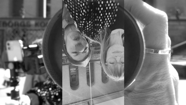 - Developing a sort of “dramatic arch” with the selected audiovisual material, which in this case consisted of a) the characters waiting for the camera to be taken out of the safe by the staff, b) rehearsing and shooting the interview with the camera, c) flipping the perspective of the two main characters regarding the question: Who is the camera? (e.g., the clown looking into the main camera or the influencer standing in front of the glass cabinet surrounded by cameras) and d) dissolving the action with an abrupt cut and using the soundtrack of Stanley Kubrick’s epic film 2001: A Space Odyssey (1968) as the ultimate climax and return (or looping effect) to the initial scene of the Earthrise image.