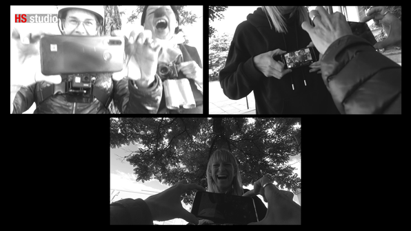 - Employing the three distinct audiovisual tracks (from the iPhone, GoPro, and digital camera) as narrative indicators of the relationship of the characters with the camera, especially regarding its meaning and functionality. For example, for the influencer, a digital tool for documenting one’s own life, for the documentary filmmaker, a window to the world and for the clown, an intriguing object.