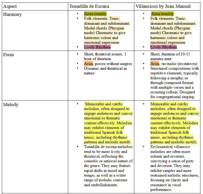 Even though the texts are religious in Juan Manuel´music, he defended the Spanish spirit and the love for the crown as it happened in tonadilla. This characteristic is well define in the recitado (recitative) of Venga el bárbaro Otomano. See lyrics and video below.