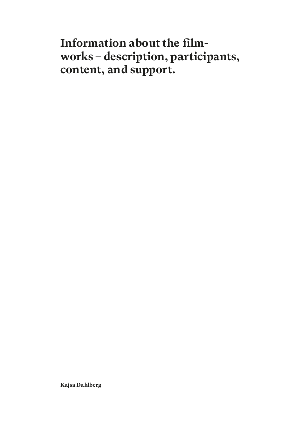 Informed by queer life practices, theories, and affinities, this documented artistic research project (doctoral thesis) draws from new materialist and post-humanist discourse in order to reconsider what role visual media play in the historical need to separate the human and the environmental. It asks, how do we challenge prevailing perceptions of film and photography as inexorably linked to ideas of progress and modernisation, to linear temporality, spatial separation, and to land-based thought? Based on the acknowledgement that we need to rethink our position as humans within the multiple habitats that make up the world, I investigate the ways in which the apparatus of film, rather than being an extension of human perception, attests to the material interdependences and co-productions that hold a potential for converging human and nonhuman perspectives. "Tidal Zones – Filming Between Life and Images" considers the cinematic space of the ocean alongside Jean Epstein’s film "Le Tempestaire" (1947); it follows early photographic chemical methods involving seaweed to both develop film and to examine the technical intra-activity of human and nonhuman regimes as part of photography itself. Within the scope of this research, I argue and demonstrate how film engages in a sensory and reciprocal involvement with the material world, one that addresses the ability to sense, not just with one’s eyes, but with the entire body. "Tidal Zones" are real locations, the habitat of a multitude of organisms, and the home of seaweeds. It is a place that is neither land nor sea but constitutes a zone with its own specific relationships and living conditions. In its refusal to be either or, it forms a (non-binary) temporal figuration between presence and absence, solid and liquid, life and death, dictated by the motions of spiral and circular time. This space, "Between Life and Images", is the chemical rockpool (the darkroom) out of which photography and film grew. The PhD submission consists of four film-works, "The Etna Epigraph" (2022), "Seaweed Film" (2023), "Coenaesthesis – It Is Not Even True That There Is Air Between Us" (2023) and "The Spiral Dramaturgy" (2019) along with the exhibition "The Tidal Zone" shown at Index - The Swedish Con-temporary Art Foundation, Stockholm, from 25 November 2022 to 12 February 2023 and at Havremagasinet, Länskonsthall Boden from 14 October 2023 to 11 February 2024. The films and documentation from the exhibitions are included in the submission, which also includes an “Opening Letter” and two texts called “Filming with the Ocean” and “Methodology of the Spiral”. This dissertation has been carried out and supervised within the graduate programme in Visual Arts at the Royal Institute of Art. The dissertation is presented at Lund University in the framework of the cooperation agreement between the Malmö Faculty of Fine and Performing Arts, Lund University, and the Royal Institute of Art regarding doctoral education in the subject Visual Arts.