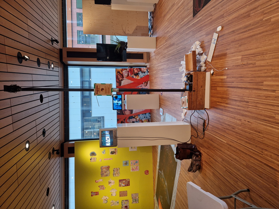 The final experiment sought to work with the concept of surveillance time. Upon entering the room, you are greeted by a monitor displaying live surveillance feeds from around the world. You can scroll through and explore various streams, observing real-time activity across different locations. Eventually, you stumble upon a live feed of the very room you're in, though it's currently empty. After a moment, you see yourself appear on the screen, walking into the room and taking a seat.