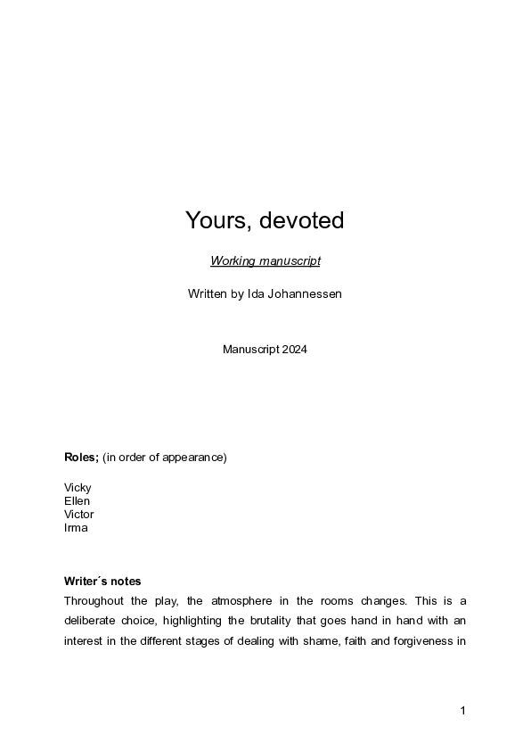 Yours, Devoted engages with intergenerational trauma, motherhood, and silence. It raises questions about how shame, love, and dependency are passed on — and how storytelling can become an act of repair. The work seeks to include lived female experiences in the professional process, ensuring authenticity, care, and awareness of vulnerability.