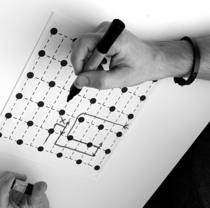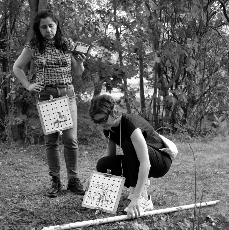 In dialogue with a sighted interlocutor the blindfolded explorer would then set out into the garden with their drawing. Rather than lead or guide the explorer, the interlocutor’s role was to support the emergence of the explorer’s blindfolded world in language in relation to both the visualisation and the newly encountered forms of the garden. As the exploration developed and the relationship between the garden and the visualisation began to get increasingly complex, new words were added onto the drawing by the blindfolded explorer.
