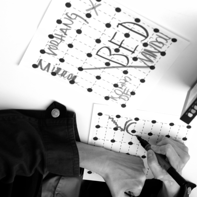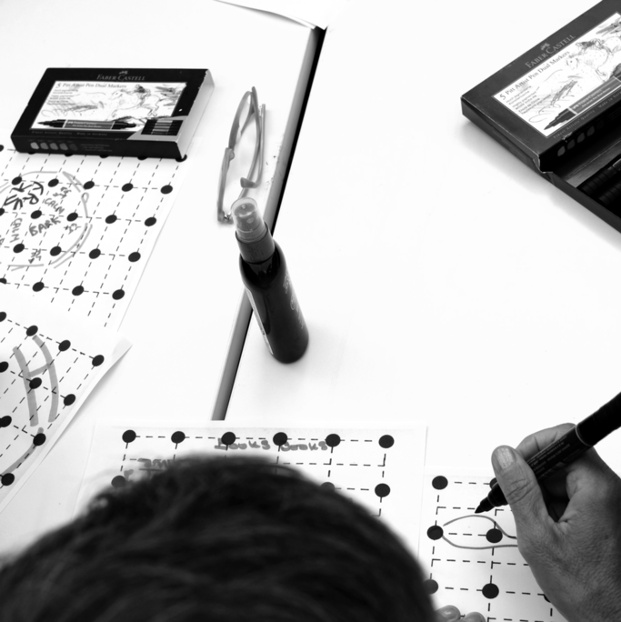 Through a two-stage visualisation process, participants were asked to imagine a space of learning that was important to them. By following a series of verbal prompts, that space was gradually transformed in mind into a spatialised arrangement of words. Those words were then translated onto a tactile paper surface as an arrangement of graphic lines.