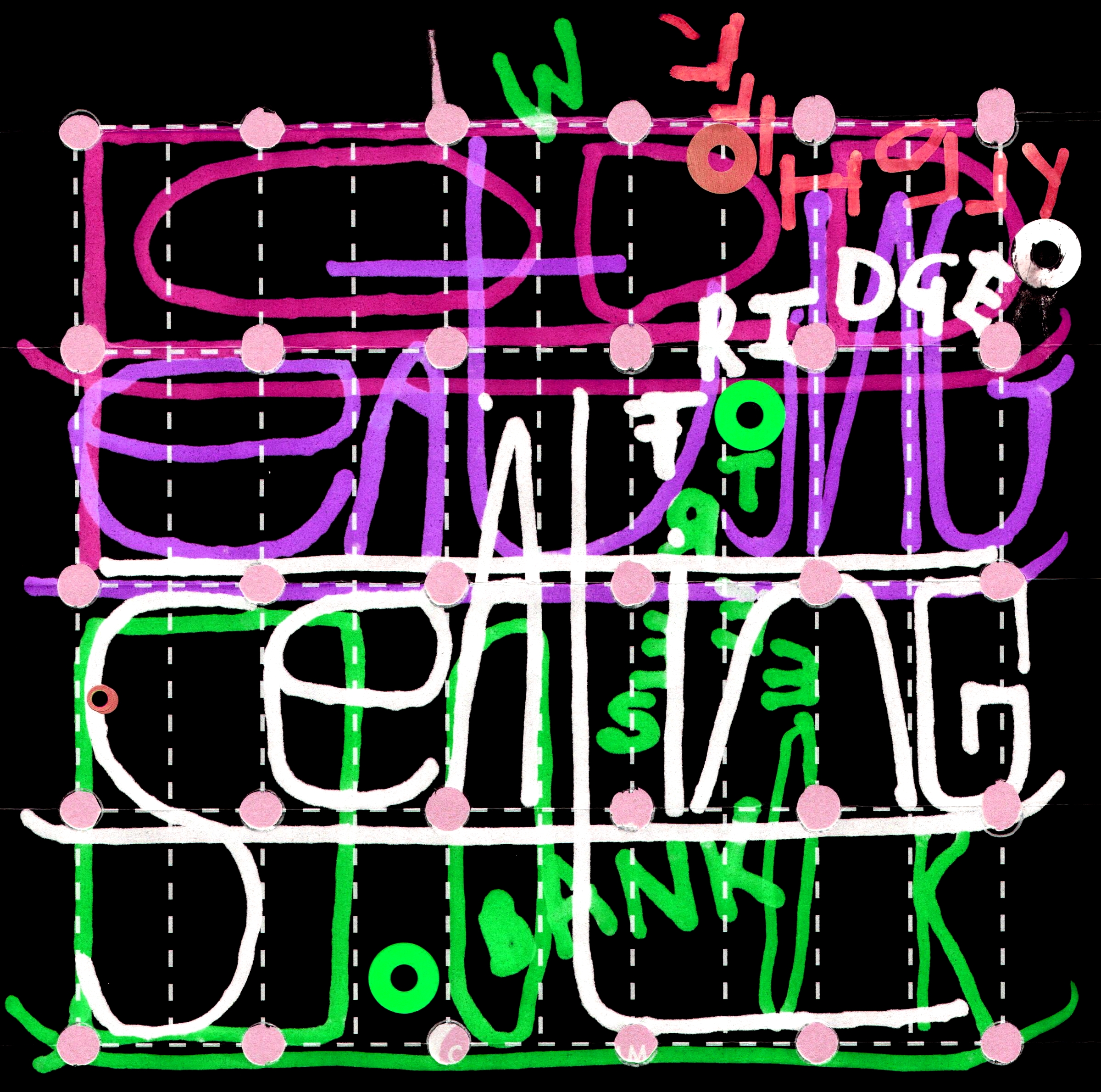 The results of this process were attended to through blindfolded writing activities, conducted in the act of moving. This enabled additional letter and word forms to be added to the cartographic word drawing in relation to the body's movement through that space as it blended with the garden. These marks productively and generatively blurred the textual with the textural, feeding a developing psychic ecology of wordforms knitted into the space and time of the garden's sociomaterial world.