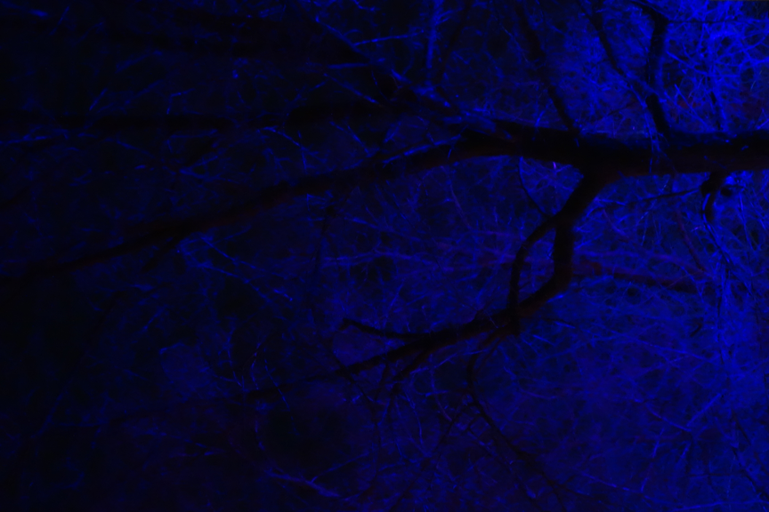 I did an experiment in the Blackbox where I tried to suggest a nighttime narrative through light and sound. For this immersive experience I created an elongated space with black curtains. I placed a speaker at each end of the space and played a soundscape composed of field recordings and music. Three lights were hanging above the space shifting with the sound to suggest different scenes and transitions.