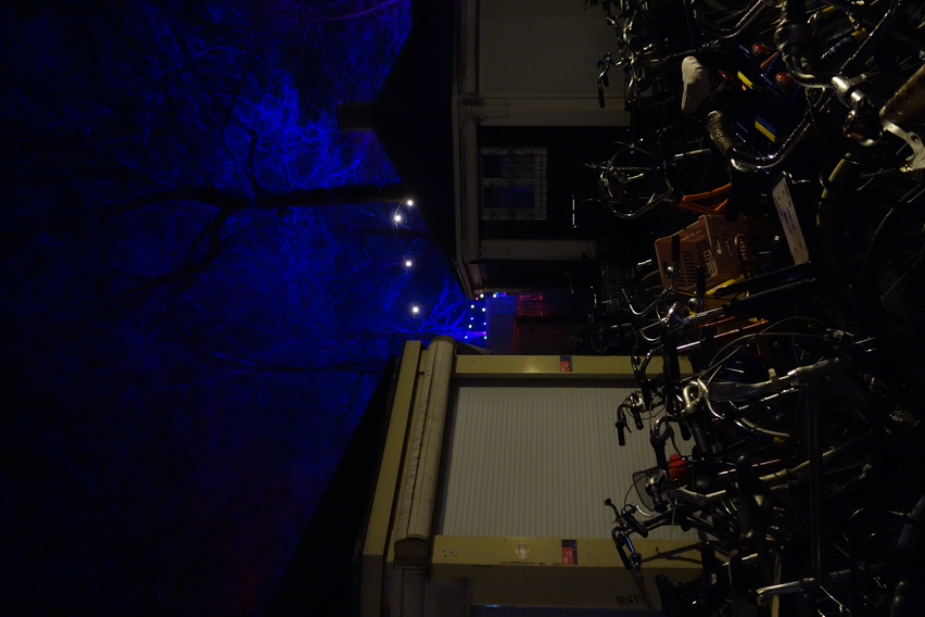 In Utrecht the night is more contrasted the punctual lights serve more as milestones, they are not meant to erase the darkness but to guide you through it.