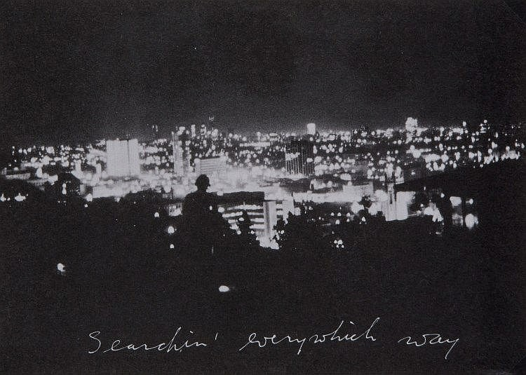Bas Jan Ader was a Dutch conceptual artist based in California. He mostly created performances that were documented through film and photography. In 1973 he started an artwork titled “In Search of the Miraculous”. This final work was supposed to be a triptych but unfortunately Ader died at sea while trying to cross the Atlantic Ocean on a sailboat. The last work he completed was a performance where he would walk from dusk til dawn through the city of Los Angeles with a small flashlight while being photographed by his wife Mary Sue. When describing this work Peter Schjeldahl from the New Yorker stated : “Tears, in this instance, were very nearly provided by me, and I doubt that knowledge of Ader’s impending death had much to do with it. Rather, the lonely figure in the vastness of the city, as the beautiful song looped in my memory, ambushed my heart. The work’s material shabbiness and playacting artificiality intensified the effect, roping me into complicity with the artist’s intention as efficiently as a halcyon film by Godard.”